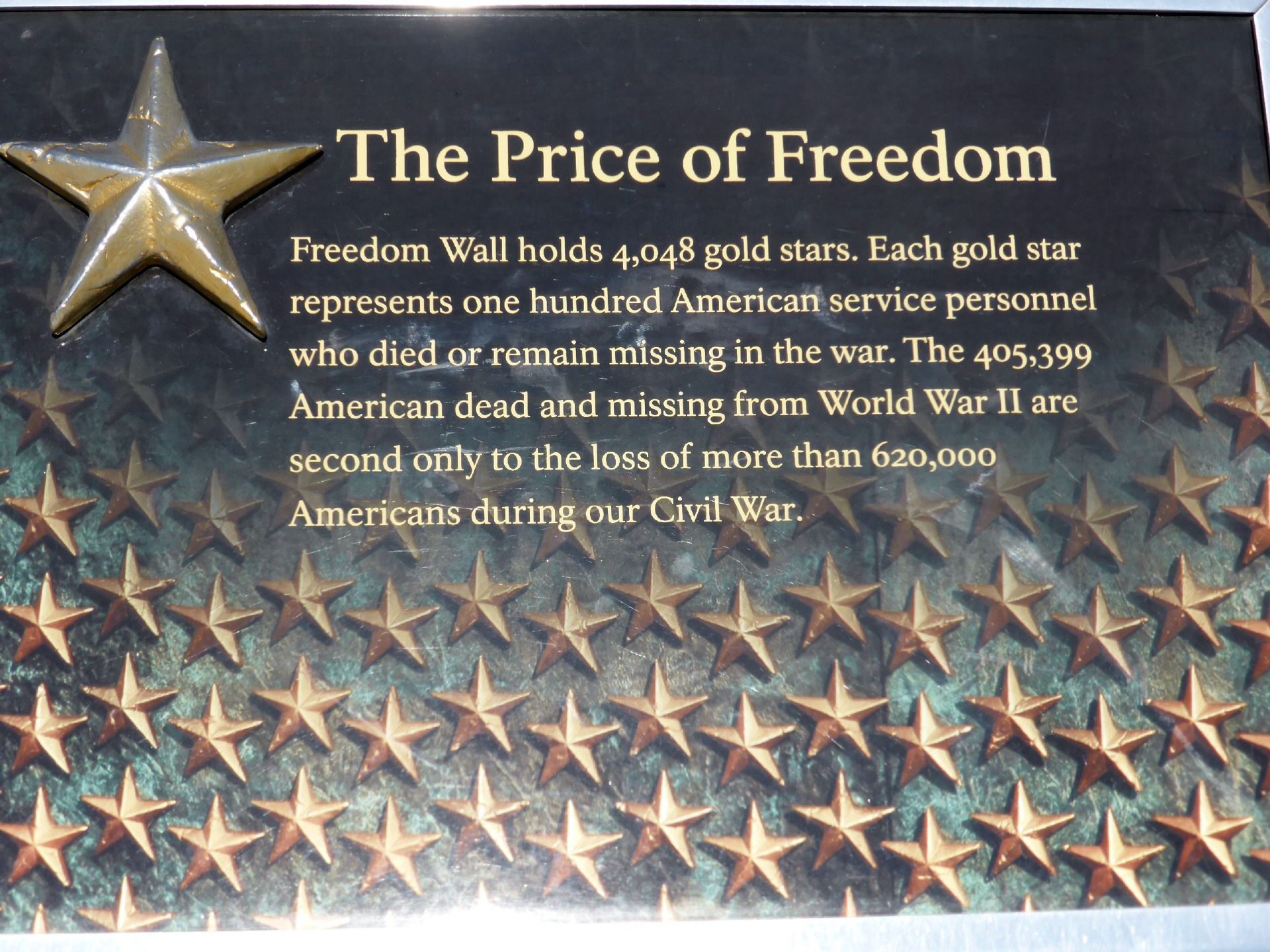 An einer grossen Wand sind 4058 Goldsterne angebracht – jeder Stern für 100 gefallene Soldaten im zweiten Weltkrieg. Nur der Bürgerkrieg hatte noch mehr noch mehr Tote gefordert.