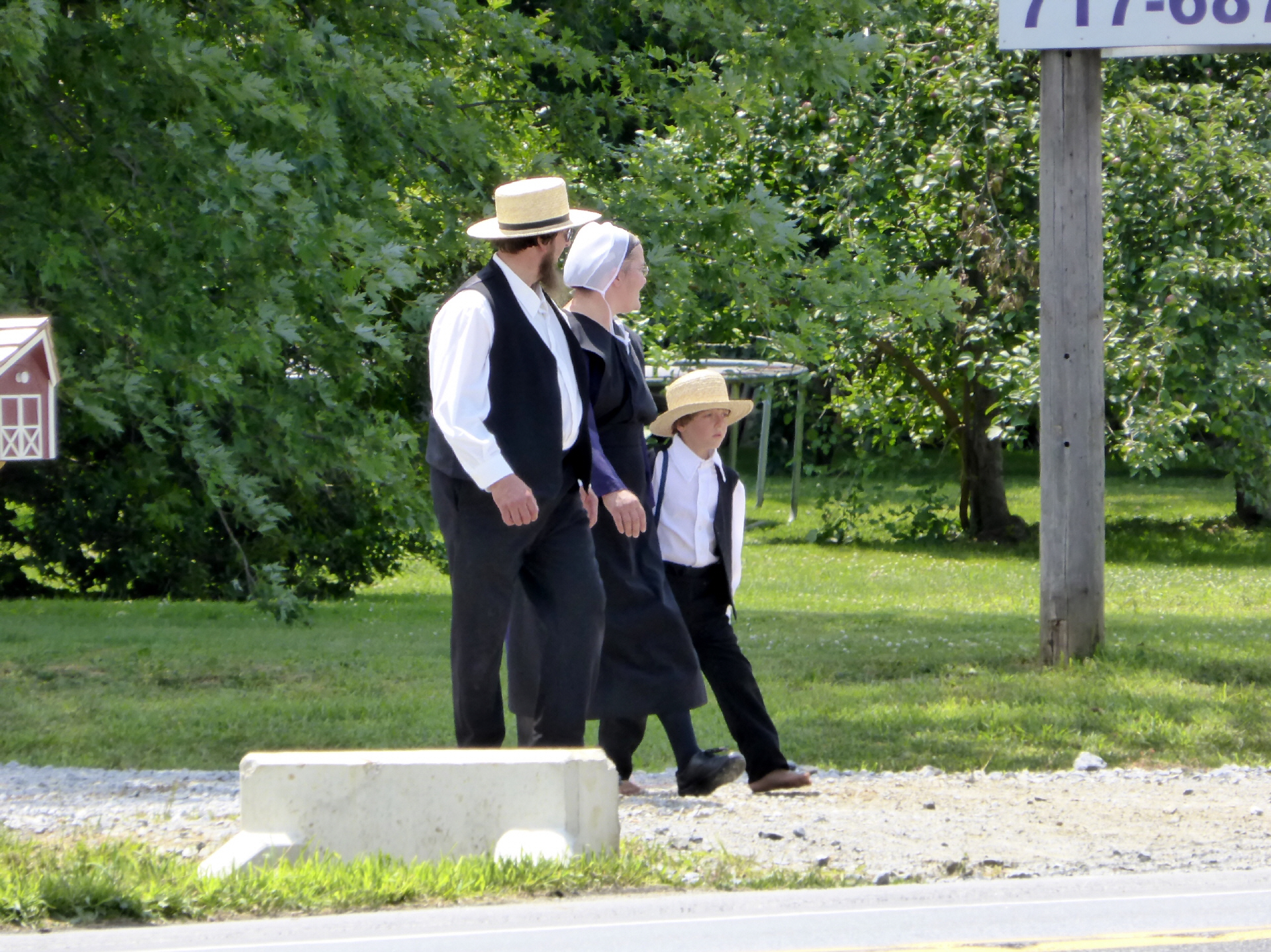 Beleuchtung, Kühlschrank und Heizung funktioniert mit Propan. Elektrisch von Zuleitungen gibt es nicht – warum? Somit hätten sie im Haus ein Radio, TV, Computer und vieles mehr. Sie legen jedoch sehr grossen Wert auf Familie und Gemeinschaft. All diese Dinge würde die Menschen ablenken und auseinander bringen. Das Telefon ist ausserhalb des Hauses. Wer kennt nicht: alle sitzen am Tisch, das Essen steht bereit und das Telefon klingelt?! Die liberalen Amischen fahren auch Auto. 47 % arbeiten als Farmer, der Rest als Geschäftsmänner – was dies auch immer heissen soll. Ärzte und Juristen gibt es nicht. Sie lassen sich jedoch medizinisch in offiziellen Spitälern behandeln. Sie zahlen wie jeder Amerikaner Steuern. Von der ‚Social Care‘-Steuer sind sie befreit, da sie sich selber in der Gemeinschaft helfen. Man stelle sich vor: ein grosses Haus brennt nieder und innert 5 Tagen ist das neue Haus aufgebaut. Alle helfen mit – am Sonntag arbeitet jedoch niemand! An Kleidern findet man keine Knöpfe oder Reisverschlüsse, nur Druckknöpfe. Alles soll möglichst schlicht wirken. Die Frauenkleider werden mit Stecknadeln zusammengehalten. Die Frauen tragen weisse Häubchen. Auf dem Feld ein Kopftuch – immer eine Kopfbedeckung nach dem biblischen Grundsatz: ‚die Frau bedecke ihr Haupt, wenn sie betet‘ – und sie weiss ja nie, wann und wo sie betet. Die Männer tragen im Winter schwarze Hüte, im Sommer Geflochtene. Hat er einen Bart, so ist er verheiratet. Die Amischen leisten keinen Militärdienst. Zwischen 17 und 22 Jahren können die jungen Erwachsenen ausprobieren, wie es in der anderen (englischen) Welt aussieht. Erst dann entscheiden sie sich für oder gegen das Amisch Leben. Mehr als 90 % bleiben Amish.