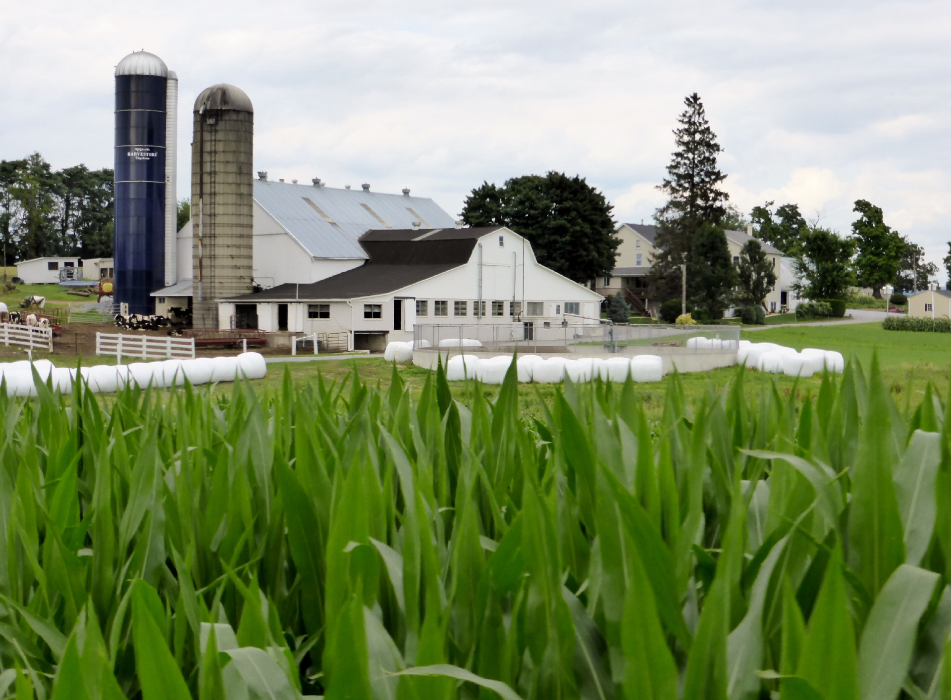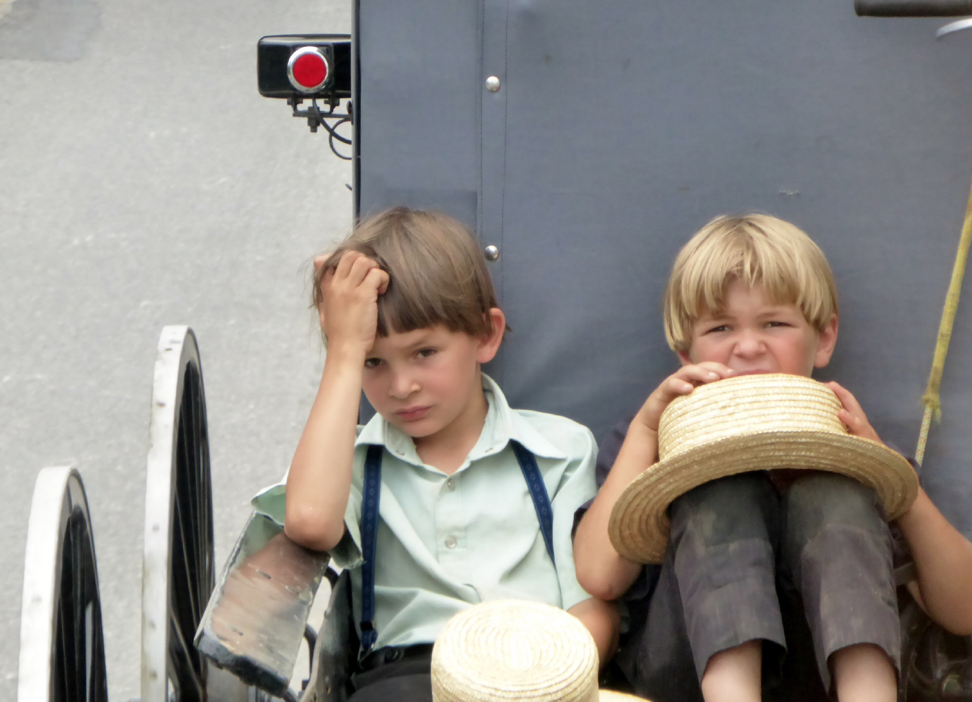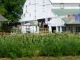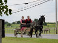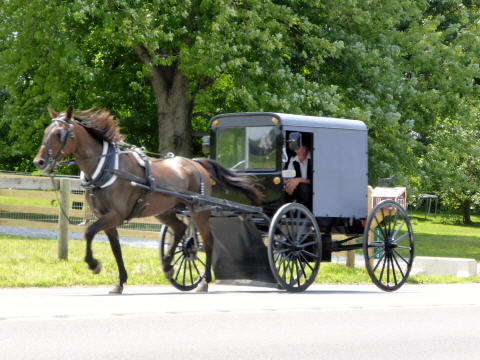 Sehen die typisch, riesengrossen Häuser – kommt eine neue Generation dazu, wird ein Hausteil angebaut - Ställe (meistens 40 Kühe) mit den hohen Silos. Überall riesige Maisfelder für Futtermais. Jede Amisch Farm produziert so viel Essen, wie 144 Leute in einem Jahr essen! An den langen, über den ganzen Hof gespannten Wäscheleinen hängen hoch in der Luft unzählige Wäschestücke – NIE an einem Sonntag! Schwarze Hosen, viele Hemden in matten Farben, Kleider, Blusen, weisse und schwarze Schürzen. Bei den Schuhen gilt freie Wahl. Haben jedoch keine Frau in Schuhen mit Absatz gesehen. Fahrräder sind verpönt, denn somit bekämen die Leute einen zu grossen Bewegungs-Radius. Also wird Trottinet mit grossen Rädern gefahren. ‚Buggys‘ und Transport-Buggys überall. Der typische, geschlossene Buggy (wie eine Holzschachtel auf Rädern), von einem Pferd gezogen, kann bis zu zehntausend Franken kosten. Die vorgespannten Rennpferde können nochmals so viel kosten. Also eine nicht ganz billige Familien-Karosse! Was uns auffällt: fast niemand trägt eine Brille und die Leute sind schlank. Traktoren nur mit Stahlrädern.