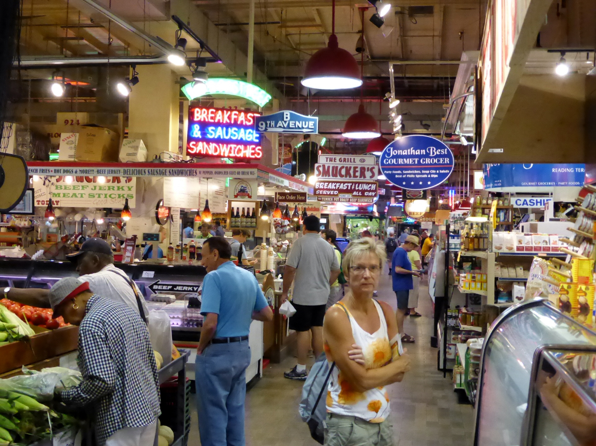 ‚Reading Terminal Market‘ - eine wunderschöne Markthalle, mit allem was das Herz begehrt. Das Motto ‚fresh and local every day!‘ Die hiesige Spezialität: ‚Philly Cheese Steak‘ - ein Sandwich gefüllt mit kleingeschnittenem Steak, Zwiebeln und Käse ‚Philadelphia‘ (cremiger Streichkäse).