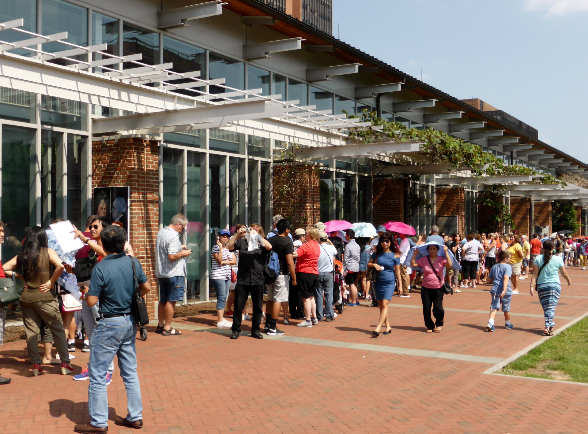Ein Ranger gibt uns den Tipp, dass wir vom Vorort ‚Manassas‘ gut mit dem Vorortszug nach ‚Washington D.C.‘ hineinfahren können. Holen in der ‚City Hall‘ eine Berechtigung, damit wir drei Tage auf einem Parkplatz stehen dürfen - ist angeknüpft an das Bahnbillet. Der ‚Virginia Express‘ fährt wochentags morgens von 6 – 9 Uhr und abends 16 – 19 Uhr die Pendler hin und her. Die langsame Fahrt mit dem doppelstöckigen und dieselgetriebenen Zug dauert eine Stunde.