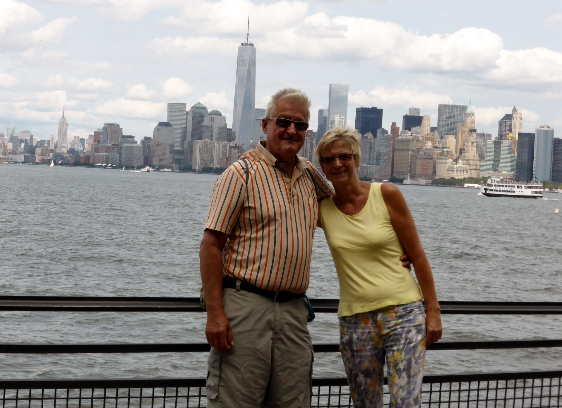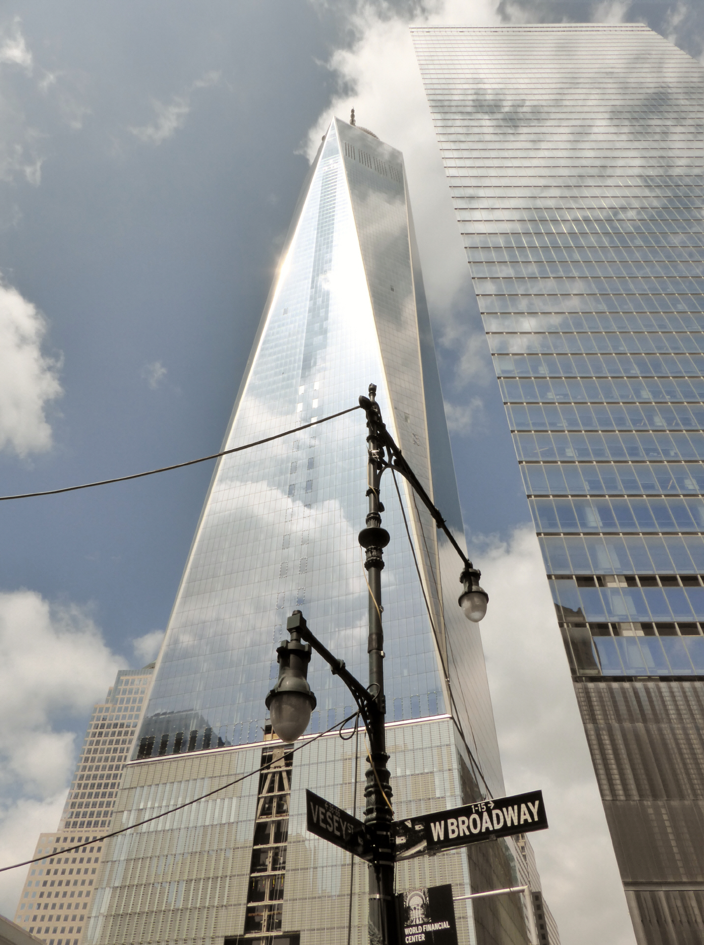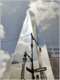 Das neue ‚World Trade Center‘ ist nur noch ein Wolkenkratzer (der Höchste von New York). Hier standen die Zwillingstürme, welche am 11.9.2001 durch Terroristen attackiert wurden und kurz darauf eingestürzt sind. Heute sind auf den Fundamenten der zwei Türme grosse Bassins, in welchen Wasser unendlich in die Tiefe stürzt. Rundherum sind in Messingtafeln alle Namen der 3200 Getöteten eingraviert. Bei den Aufräumarbeiten wurde ein zerschundener Baumstumpf gefunden, welcher in einer Baumschule gesund gepflegt wurde. Heute ist der Baum wieder 9 m hoch und hat zum ersten Mal geblüht - ein Zeichen der Hoffnung! Das im 2014 eingeweihte 9/11-Museum ist unterhalb der Bassins. Eindrücklich wird die Geschichte der vier Terroristen-Flugzeuge nachvollzogen. Viele Gegenstände der Feuerwehrmänner werden ausgestellt.