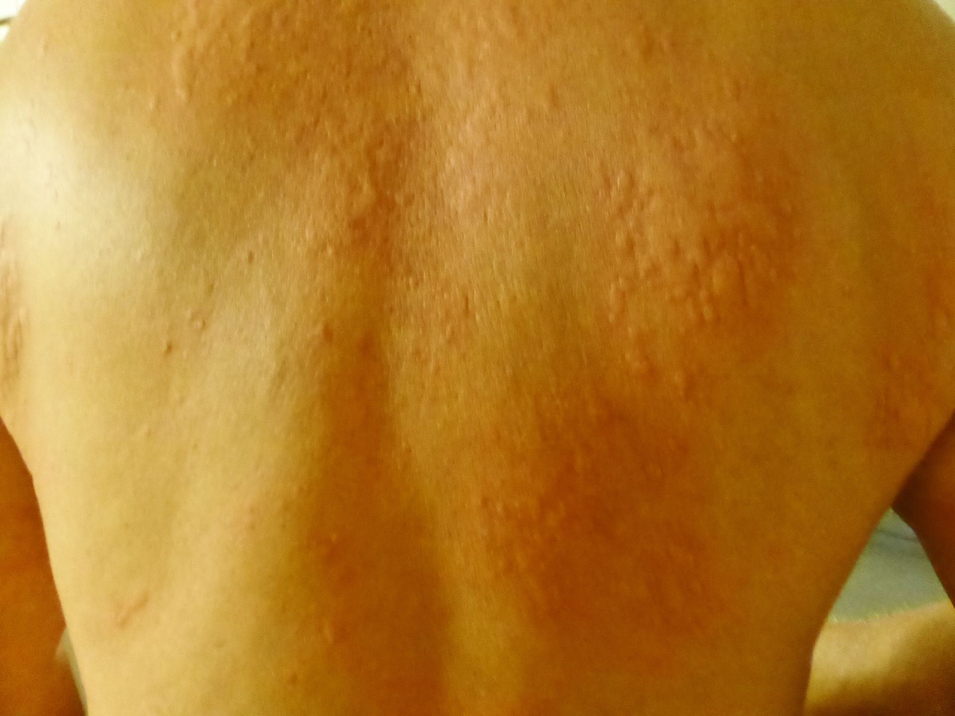 Am folgenden Tag wird es abends wieder schlimm und wir fahren zur 24-Stunden Apotheke. Kaspar hat vom Sanitäter einen Zettel erhalten, was er gespritzt hat: Benadyl. Im Falle eines Falles soll er dies in der Apotheke kaufen. Es geht Kaspar nicht sehr gut. Er nimmt die 50 mg – also gleich zwei Tabletten aufs Mal. In der Nacht büsst dies Kaspar und ihm ist sterbenselend. Er sitzt am Boden und sagt: ‚wänd die mich eigentlich kille?!‘ Bigi ist sehr besorgt, denn es ist alles andere als lustig. Haben die Nacht doch noch einigermassen zu Ende gebracht. Nach einer gewissen Zeit hat sich Kaspar beruhigt und ist eingeschlafen – ist ein Antiallergikum und Beruhigungsmittel. Die nächsten Tage nimmt er nur noch ¼-Tabletten und innert gut einer Woche ist die Allergie ausgestanden.