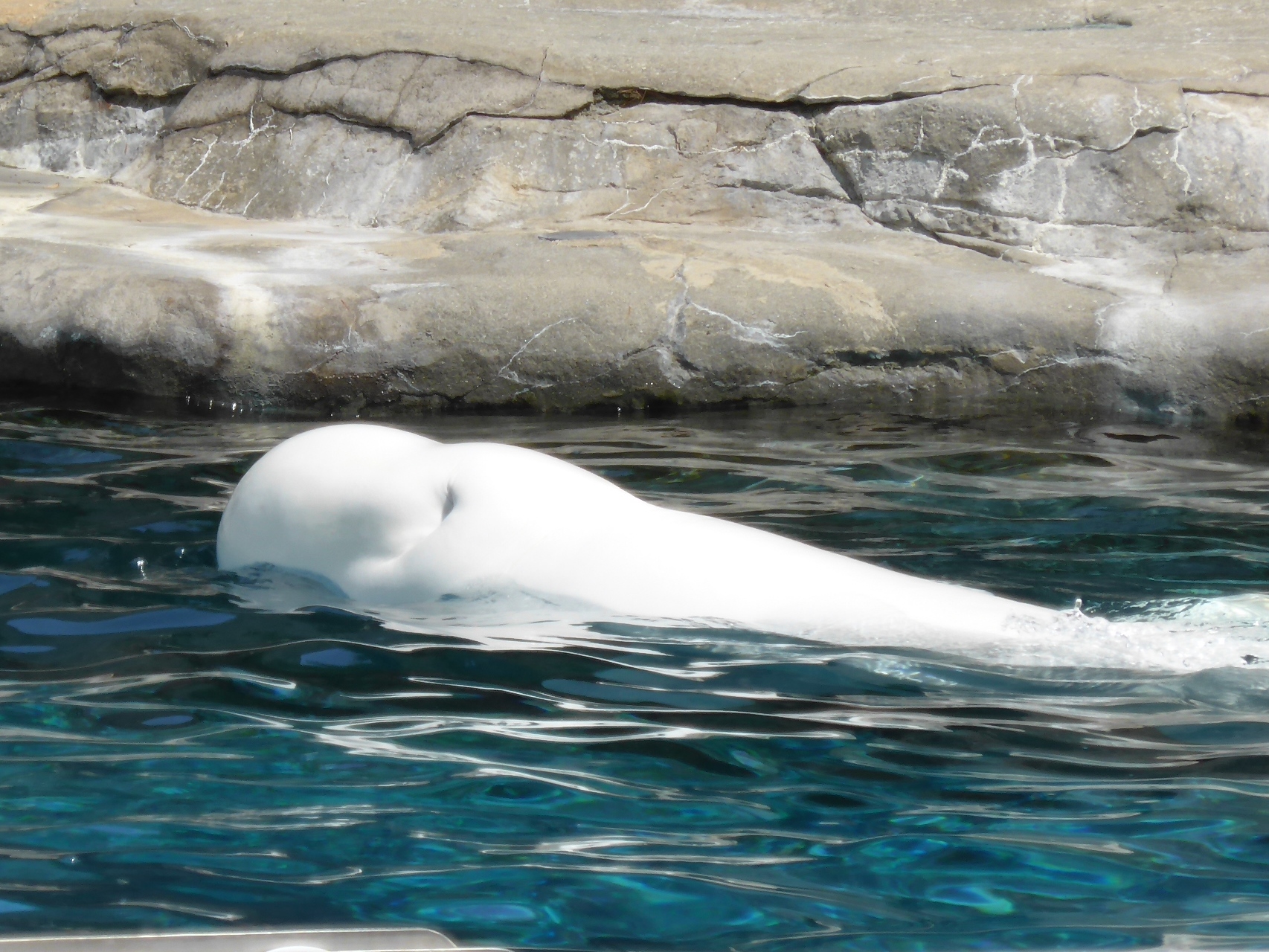 Im Aquarium schwimmt ein Beluga-Hai (der weisse Hai).