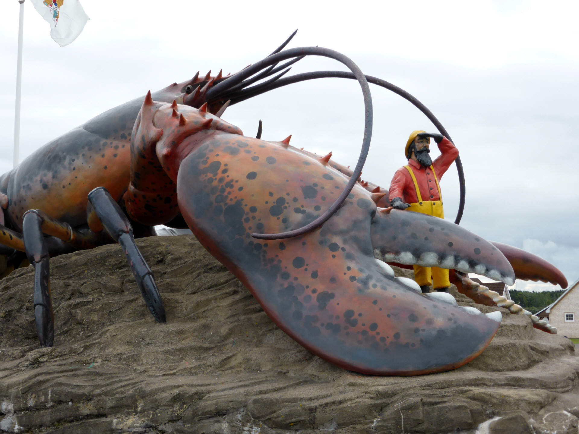 ‚Shediac‘ hat sich selbst zur Hauptstadt des Lobster ernannt. Hier steht das Denkmal: ein überdimensionierter Lobster mit kleinem Fischermann. Es ziert die Frontseite unseres Reiseführers ‚Reise Know-how‘ und wir haben es schon lange gesucht.