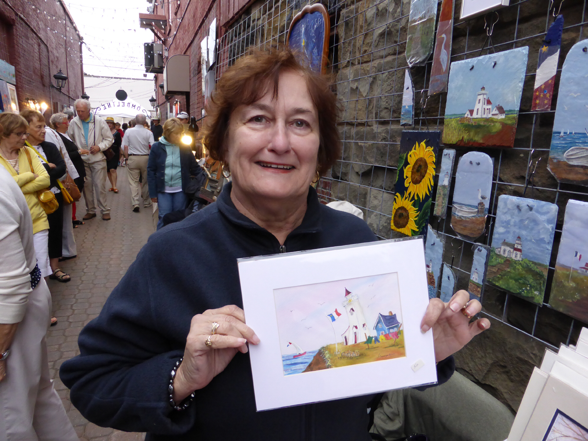 Zum Nachtessen gehen wir ins ‚Gabriele Inn‘, einem Restaurant mit französischem Flair. Bigi isst Seafood Casserolle und Kaspar das übliche Lobster Sandwich mit Frites. Auf einem kleinen Strassenmarkt kaufen wir ein kleines Bild von Georgeline LeBlanc für 50 Can$. Endlich wieder einmal ein Bild für unser Wohnzimmer, wo wir die Künstlerin kennen.