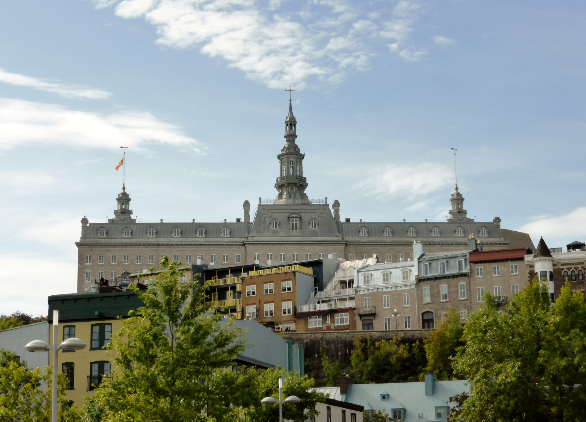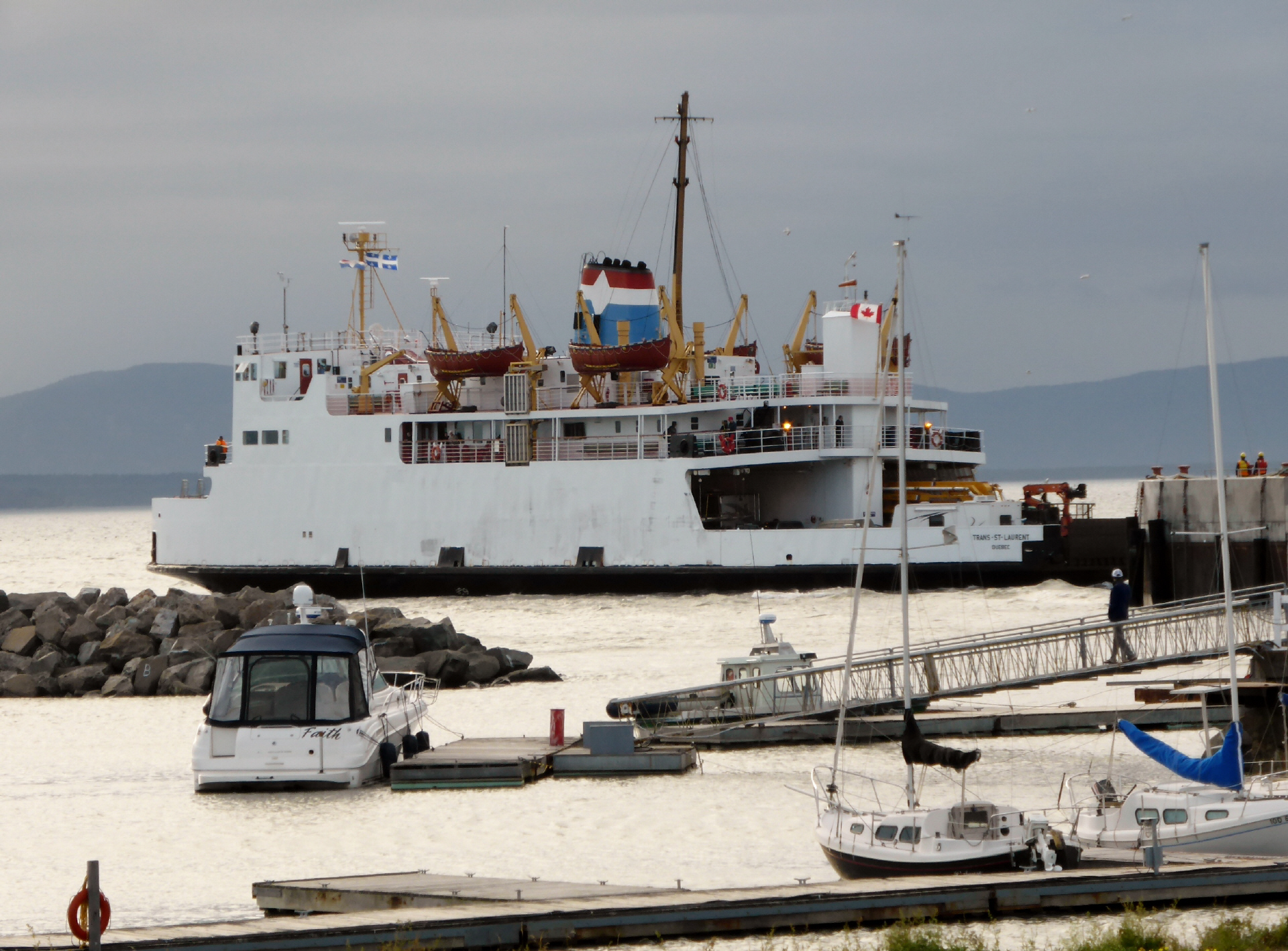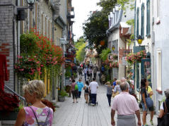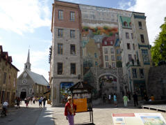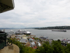 Die Bay ‚Saint Laurent‘ überqueren wir mit einer Fähre. Bigi sieht von blossem Auge Beluga Wale (weisser Wal). Diese kennen wir nur vom Aquarium. Fahren der Bay entlang durch kleine, französisch geprägte Dörfer - eine Berg- und Talfahrt mit bis 16 % Gefälle - weiter nach Québec. Hier sieht man viele grosse, Steinkirchen mit Kirchturm (katholisch).