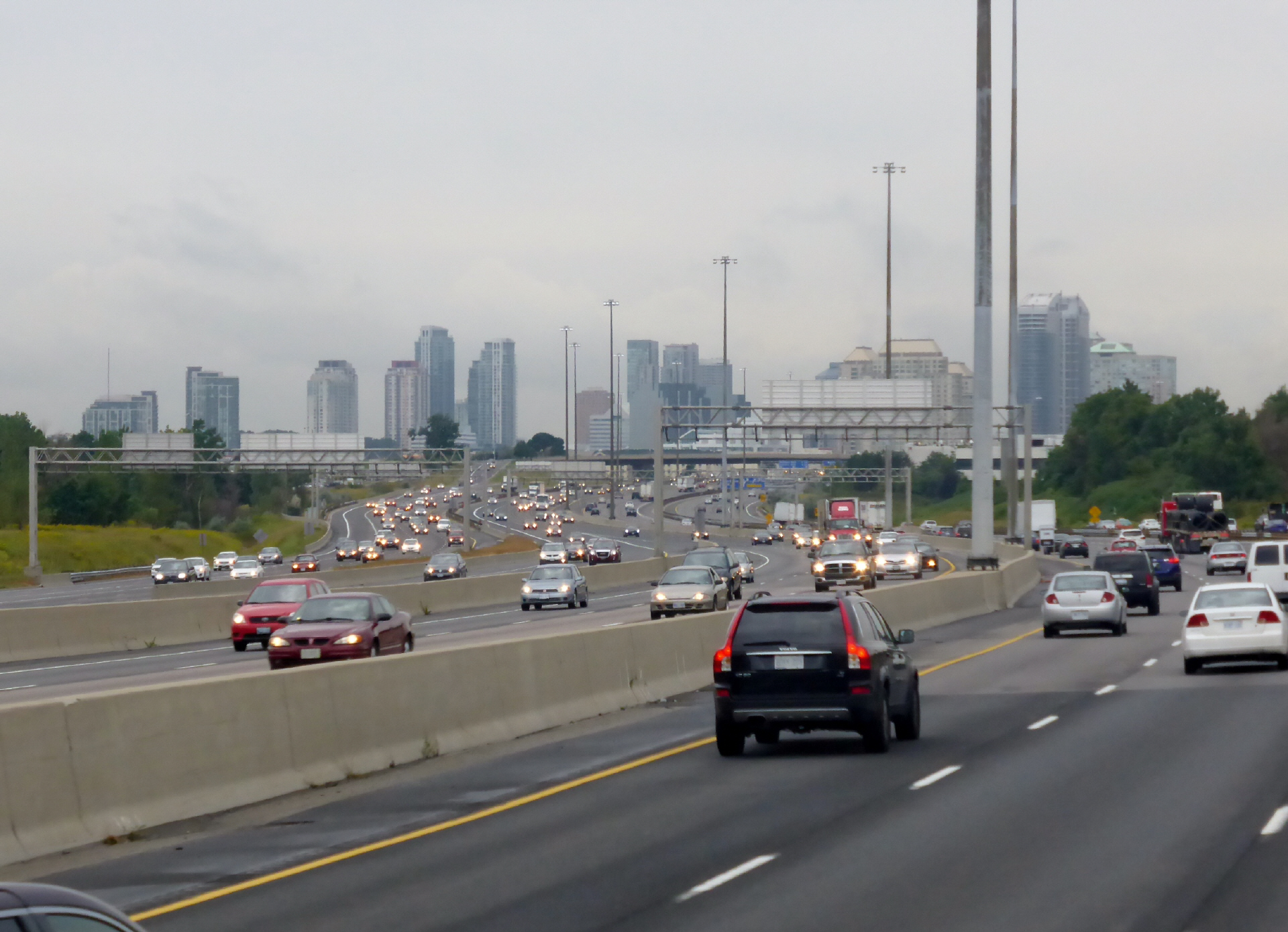 Toronto sehen wir aus dem Fenster. Kaspar meint: ‚ so e Blechlawine han ich i mim Läbe no nie gseh!‘ Bis zu 12 Fahrspuren nebeneinander in einer Fahrtrichtung. Zum Glück haben wir die richtige Ost-West-Achse erwischt. Nach 90 Minuten finden wir auf der anderen Seite der Stadt ‚ausgeworfen‘. Nur noch 30 km bis zu den Niagarafällen.