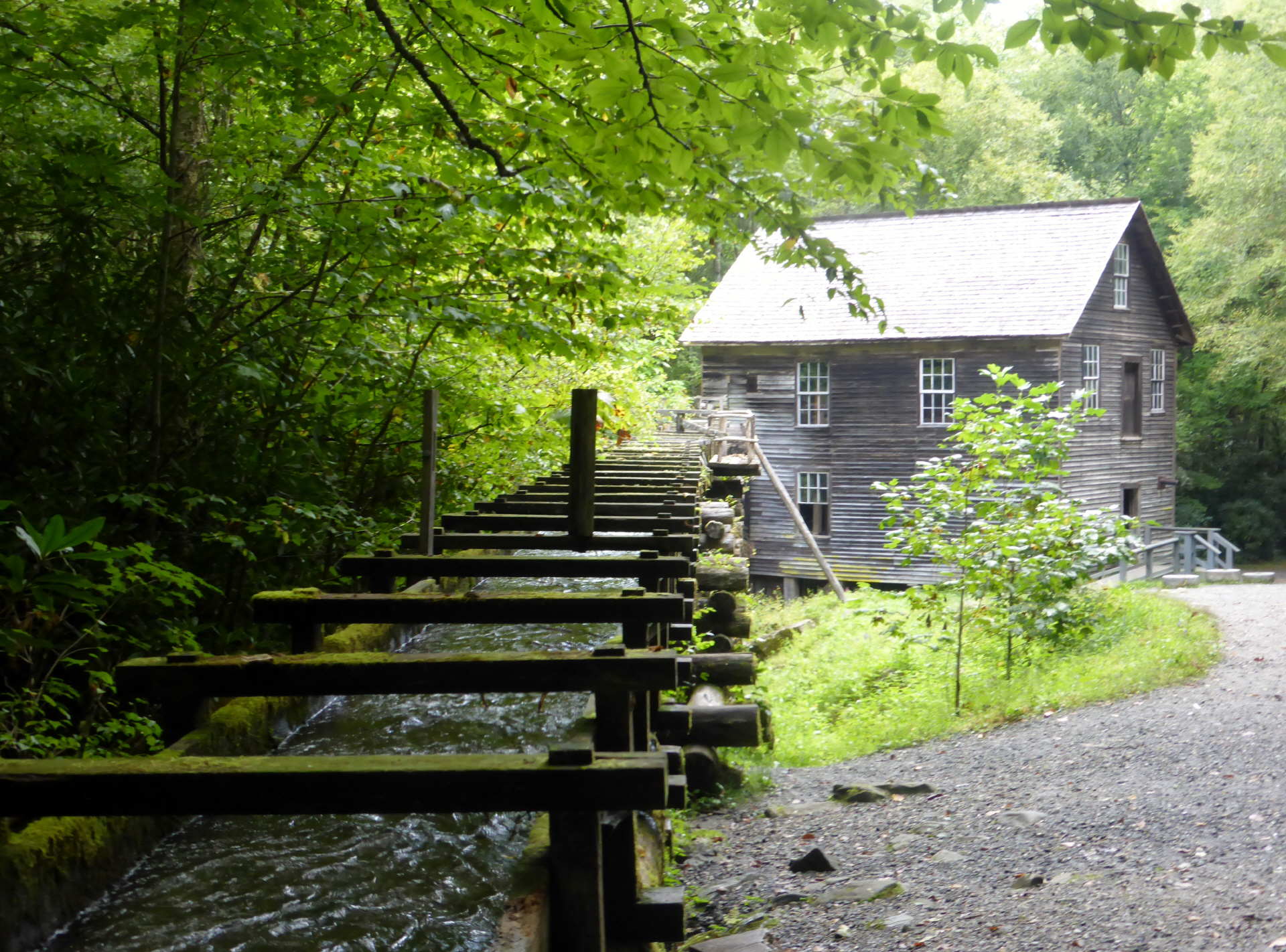 Besichtigen die alte Mühle 'Mingus Mills' aus dem Jahre 1886 mit einer der ersten Stahlturbinen. Ein einsamer Müller verkauft Maismehl.