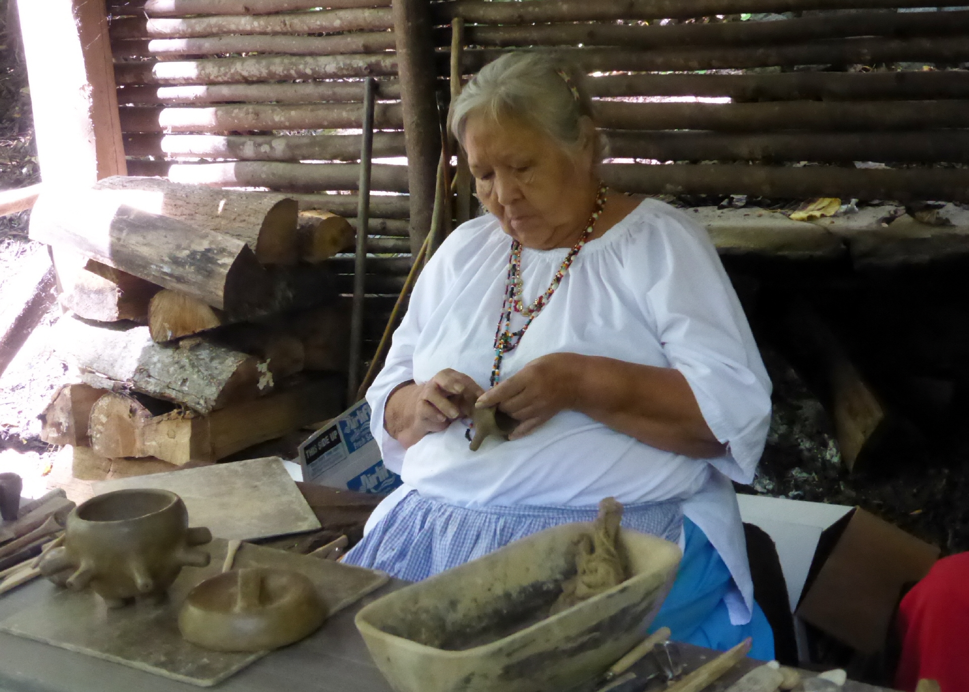 Im ‚Oconaluftee Indian Village‘ werden die Häuser und das Handwerk gezeigt. Wir schauen uns auch die Indianer-Tanzshow an.