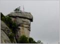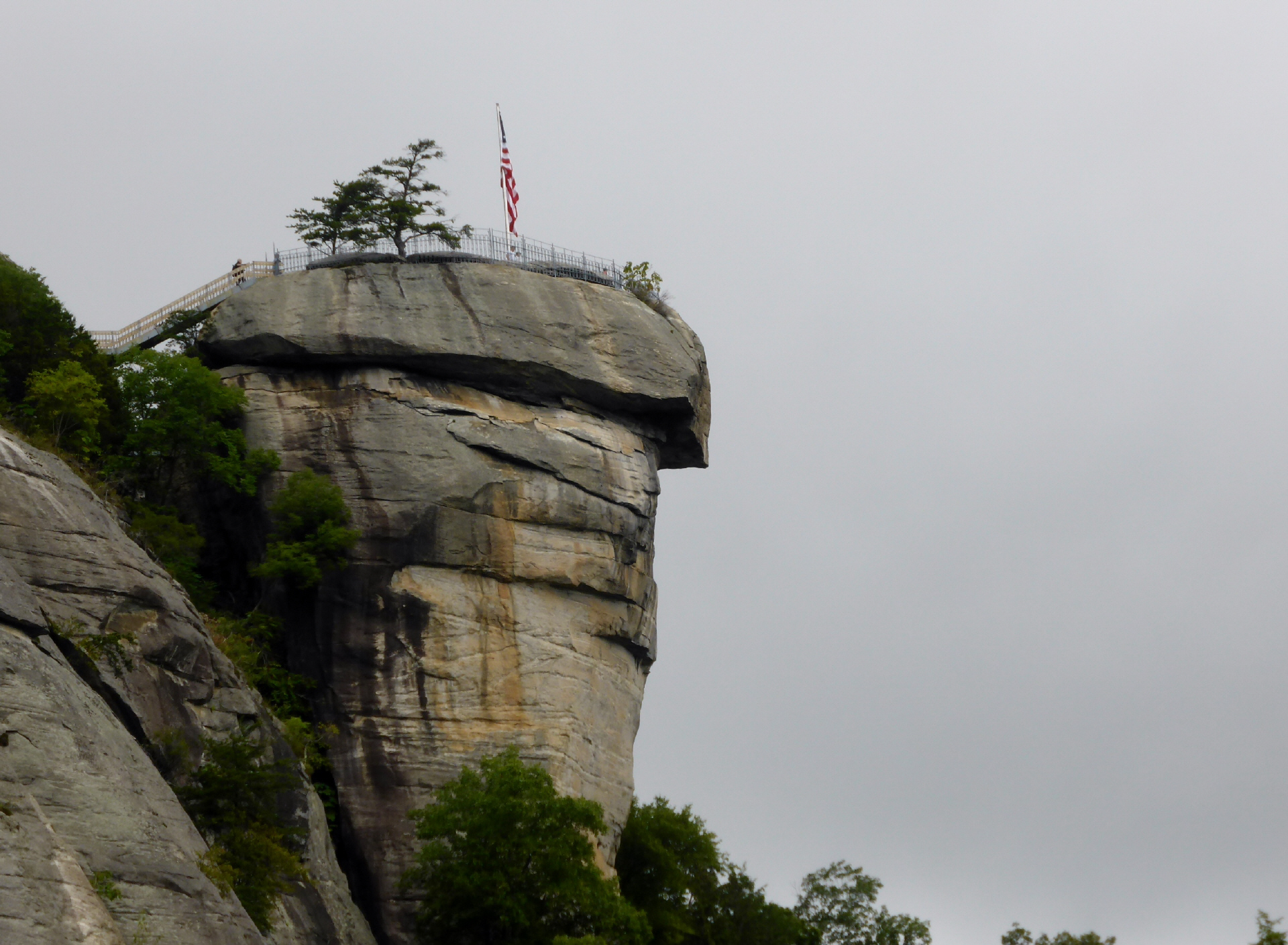 ‚Chimney Rock‘ - Ein alleinstehender, grosser Felsen als Aussichtspunkt mit der obligaten USA-Flagge. Um auf den Felsen zu gelangen gibt es einen Lift, welcher uns 26 Stockwerke in 30 Sekunden hinauf bringt. Natürlich gibt es auch einen Treppenweg.