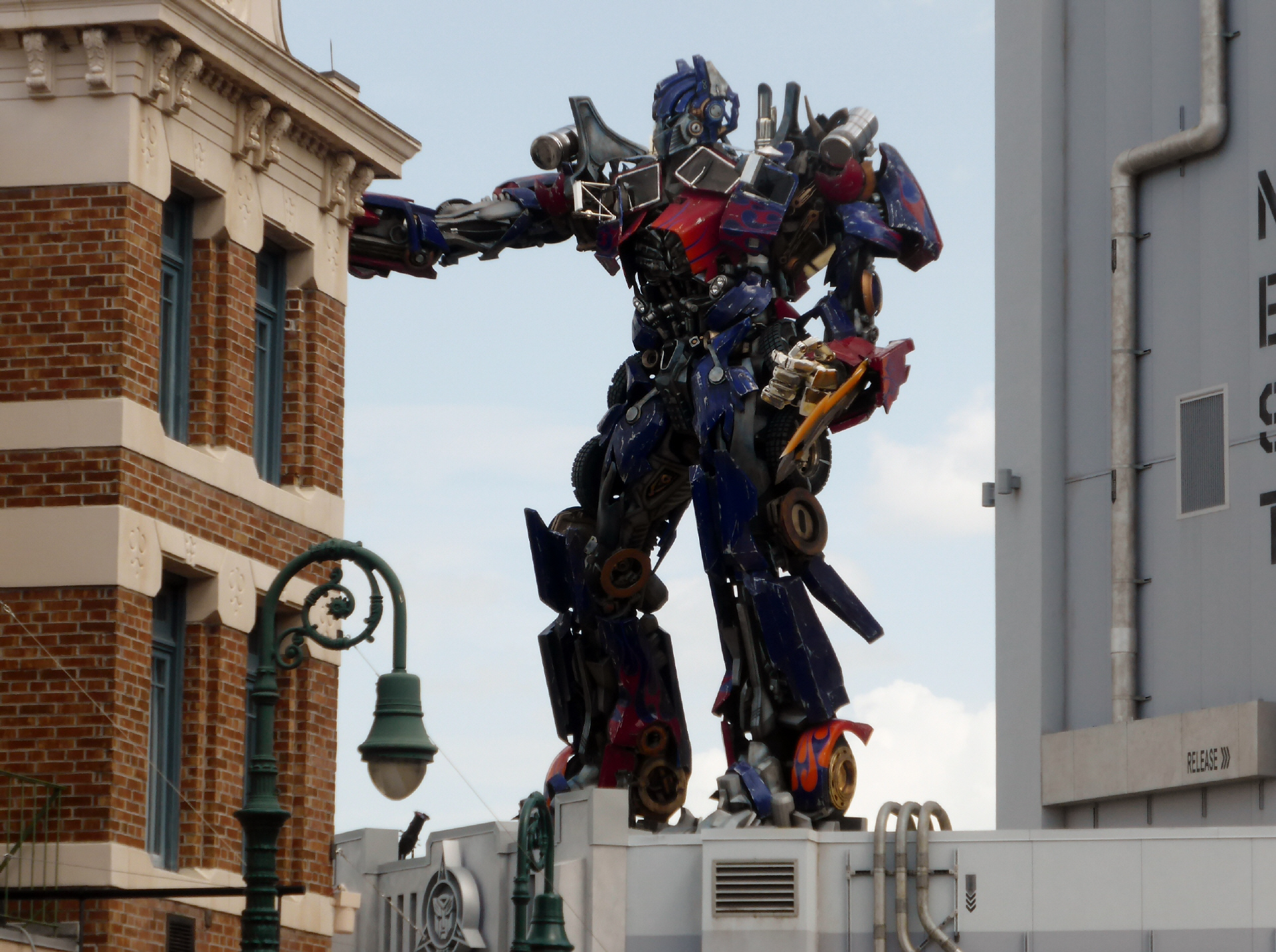 Zuerst besuchen wir die Show ‚Transformer‘. Dazu werden wir in eine indoor Achterbahn verfrachtet. Mit lautem Getöse und harten Bewegungen, rauf, runter, links und rechts werden wir stark herumgeworfen. Halten die Augen 70 % geschlossen: Horrorfilm, alles fliegt und explodiert!