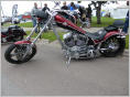 Über dieses Wochenende findet ein Motorradrally statt. Etwa 200 Motorräder (Harley, BWM, Honda, Victoria etc.) stehen aufgestellt am Strassenrand der abgesperrten Hauptstrasse. Die Fahrer mit den entsprechenden Outfits schwatzen herum. Die heranfahrenden Motorräder veranstalten einen höllen Lärm.