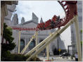 Draussen werden wir von ‚Marline Monroe‘ umarmt! Dann zu ‚E.T.‘ von Steven Spielberg. Ist nicht ganz so schlimm. Ein kurzer Ritt auf der Kinder-Achterbahn. Nun ist uns bereits hundeelend. Natürlich noch zu ‚Simpsons Ride‘ – haben keine Ahnung, was uns blüht! Hier wird es uns richtig schlecht, seekrank, Schweissausbrüche, obwohl wir die Augen 90 % geschlossen halten – nur noch ab nach draussen und hinsetzen!