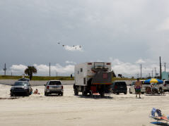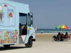 In ‚Daytona‘ gibt es zwei Sehenswürdigkeiten. Der Beach, auf dem man 5 Meilen im Einbahnverkehr fahren darf – dies für 5 Dollar – und den international bekannten ‚Speedway‘. Auf dem Beach ist unser MAN eine kleine Sensation. Das Motto heisst ‚sehen und gesehen werden.‘ Viele braungebrannte Schönheiten räkeln sich im Sand. Von Zeit zu Zeit kommt bimmelnd ein Glacé-Auto angefahren. Am Himmel drehen kleine Flugzeuge mit Werbebannern ihre Runden.