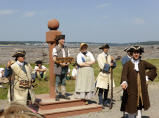 Die Stadt 'New Bern' wurde von Schweizern und Deutschen gegründet und war der Gouverneurs Sitz der Engländer bis zur Unabhängigkeit. Hier wurde im Jahre 1893 ‚Pepsi-Cola‘ erfunden. Ein Apotheker mixte aus Kolanuss, Vanille und verschiedenen Ölen ein neues Heil- und Erfrischungsgetränk. Koffein wurde erst später zugefügt. Beim Gouverneurs Palast ‚Tryon Palace‘ ist zur Feier des Nationaltages freier Eintritt in den grossen Garten. Eine schwarze Grossfamilie – die Frau hat 31 Cousins – gibt Kaspar zwei Eintrittsmarken und wir können uns ihrer Führung anschliessen. Sie tratschen die ganze Zeit und haben es lustig. Die Führerin erklärt, dass es damals üblich war, im Esszimmer viele Speisen in mehreren Gängen zu Mittag zu essen. Nun fragt eine Schwarze: Und wer hat das Geschirr abgewaschen? Ihre schwarze Cousine sagt keck: Du! Und alle lachen. Ja klar, damals waren die Schwarzen die Bediensteten.