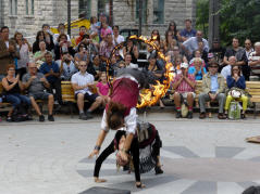 Québec ist eine Stadt zum verweilen. Sie ist in eine Unter- und Oberstadt unterteilt, die mit einem Funicolaire verbunden ist – oder auch mit vielen Treppenstufen. Die Oberstadt ist komplett mit einer Stadtmauer umgeben. Ein Teil ist davon ist zur Promenade ausgebaut. Oberhalb thront das ‚Château Frontenac‘ (heute Luxushotel) mit Blick auf den Fleuve Saint-Laurent. Schlendern durch das Hotel, wie wenn wir hier wohnen würden. 1943 wurde Geschichte geschrieben. Roosevelt und Churchill haben im Hotel die Landung in der Normandie diskutiert und in die Wege geleitet. Die 800 Hotelgäste mussten dafür kurzerhand ausquartiert werden. Die Strassenkünstler haben Tradition und begeistern die Leute.