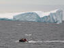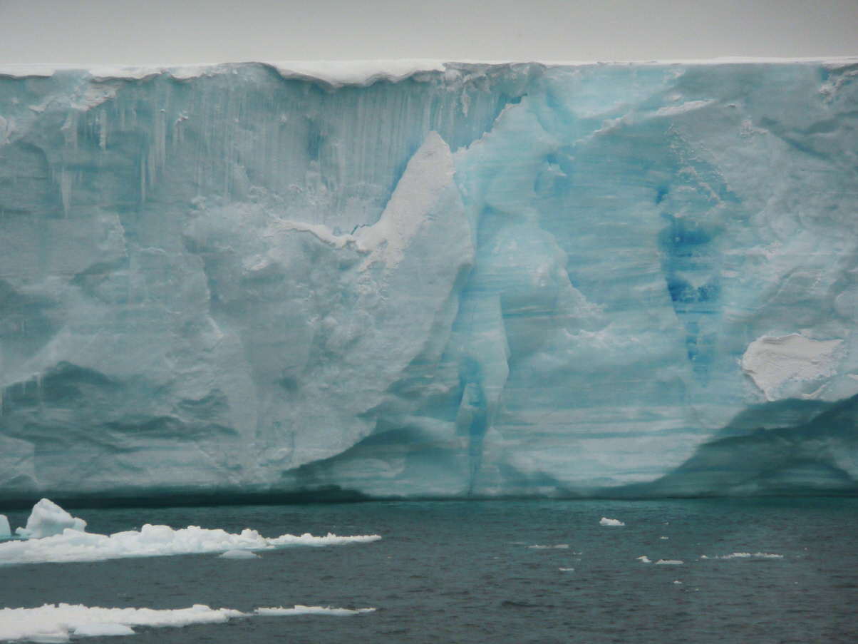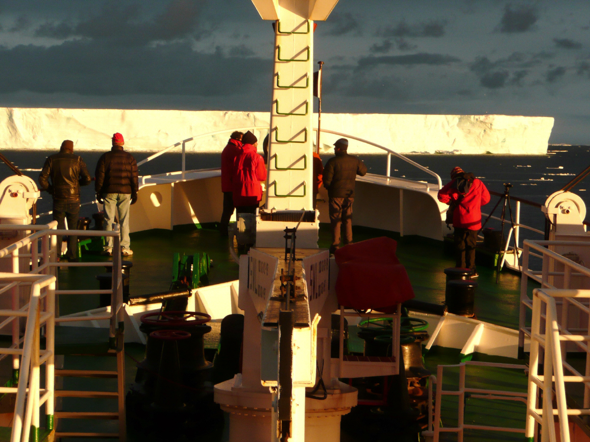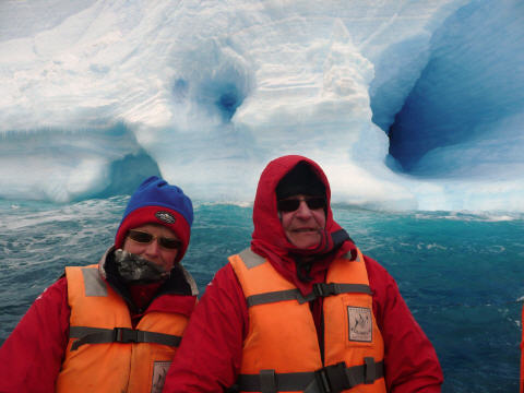 Auf der gleichen Route zurück durch die riesigen Eisberge. Diese Szenerie gibt es nur in der ‚Weddel Sea‘ auf der östlichen Seite der Antarktis. Um 10.45 Uhr steigen wir in die Zodiac. Desinfektion ist heute nicht nötig, da wir nicht an Land gehen. Die Zodiac fahren schnell bis zu den riesigen Eisbergen. In nur 5 Meter Abstand tuckern wir an den Eisbergen entlang. Die Farben sind fantastisch: von dunkelblau zu eisblau und schneeweiss. Jahrringe, ähnlich wie beim Baumstamm, zeigen das Alter des Eises an. Jetzt können wir uns die ‚Eiszeit‘ vorstellen. Diese gigantischen Eisblöcke, 20 m hoch oder höher und bis zu 10 km lang sind hunderte (tausende?) von Jahren alt. Die Wellen haben auf der Wetterseite grosse eisblaue Höhlen geschaffen. Es erheben sich schroffe Eiswände vor den Booten und die möglichen Formen der Eisblöcke sind unendlich. Auf der Rückfahrt zur ‚Antarctic Dream‘ erreicht uns der Funkspruch eines anderen Zodiac, dessen Aussenbordmotor spuckt. Sofort fahren wir dorthin, aber inzwischen läuft der Motor wieder einwandfrei. Alle sind ziemlich durchfroren und schlürfen gerne die heisse Flädlisuppe. Den Film am Nachmittag ‚verschlafen‘ wir.