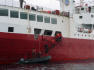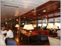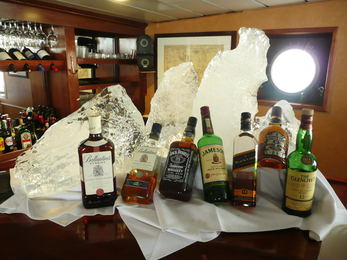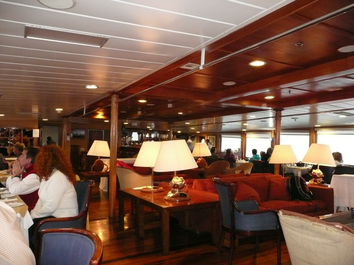 Wieder zurück wird heisse Schokolade mit einem Schluck Whisky gereicht, denn so spät war es doch richtig kalt. Das Abendessen ist wieder hervorragend (bestimmt nehmen wir nicht ab!). Kommen mit dem chilenischen Chefkoch ins Gespräch, welcher die letzten 20 Jahre in Saarbrücken gearbeitet hat. Auf der ‚Antarctic Dream‘ arbeiten 52 Leute. 17 Personen sind für die Hotellerie, 30 für das Schiff (Kapitän plus 3 Offiziere, der Rest sind Maschinisten und Matrosen), 5 Tour-Guides für die Ausflüge mit den Zodiac und diversen Vorträge zuständig, sowie ein extra mitreisender Arzt. Die Kabinen sind schön und werden gut sauber gehalten. Es können max. 72 Personen mitreisen; wir sind 58 Gäste. Das Schiff ist ca. 50 Jahre alt und wurde zuerst von der chilenischen Armee für die Versorgung der div. Antarktisstationen genutzt. Seit 8 Jahren fährt die ‚Antarctic Dream‘ unter Panama-Flagge als Expeditionsschiff für Touristen: von November bis März in der Antarktis und von Mai bis Oktober in der Arktis. Der Bug ist verstärkt und die Maschinenleistung 10‘000 PS.
