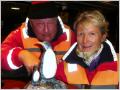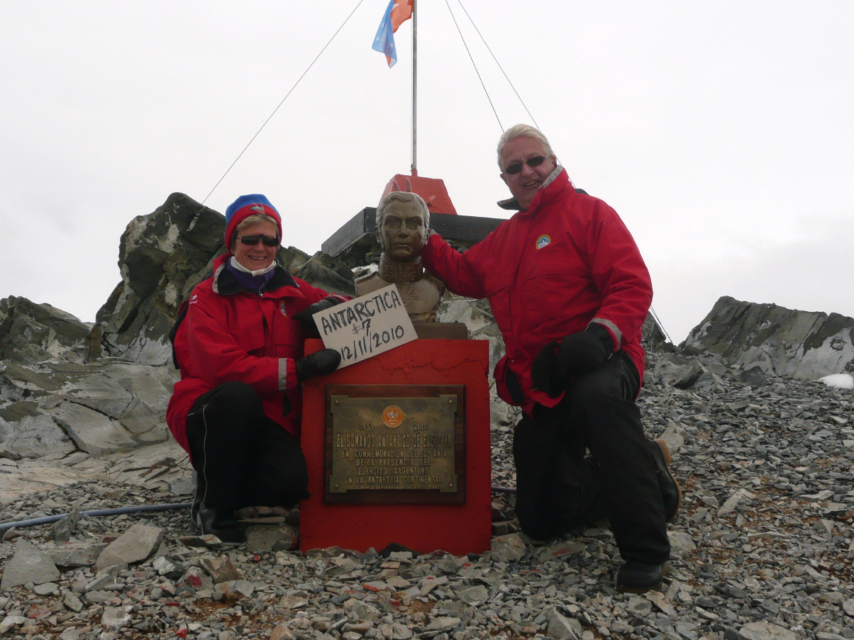 Die Nacht in der Drake Passage war wieder unruhig. Nun wissen wir endlich, wie es sich in der gefürchteten ‚Drake Passage‘ anfühlt. Aber jetzt ist es geschafft und wir haben ein wunderbares Antarktis-Panorama. Wir sind bei der Insel ‚Saint George Island‘ mit der argentinischen Station ‚Jubani‘, welche wir nun besuchen. Zuerst ziehen wir alle Klamotten an: Bigi zieht 3 Paar speziell dicke Socken an, dicke Strumpfhosen und lange Thermounterwäsche, 2-3 Pullover/Fleece, die rote spezielle Windjacke, Gummistiefel, Halstuch, Handschuhe, Mütze und Sonnenbrille. Gesicht einschmieren mit Sonnencreme UV-50! So ausgerüstet warten wir schwitzend, bis unsere Gruppe ausgerufen wird, auf das Ausschiffen mit den Zodiac (Motorboot aus Gummi mit Stahlboden, angetrieben mit einem 40 - 60 PS starken Yamaha-Aussenbordmotor, Tragkraft 12 Personen). Über eine Aussentreppe hinunter und mit Hilfe zweier Matrosen gelangen wir ins Boot und dann geht es zügig an Land. Die eine Hälfte der Gruppe macht einen Spaziergang am Strand entlang. Alle fotografieren wie verrückt die Vögel und Pinguine. Ein Pinguin ist richtig fotogen und zieht seine Show ab. Er paddelt auf dem Eis, flattert mit den Stummelflügeln und stellt sich richtig in Posse. Dann zur argentinischen Forscherstation. Der Stationsleiter erklärt die verschiedenen Häuser. Es hat eine Krankenstation, eine Kapelle, Taucherhaus mit Dekompressionskammer, div. wissenschaftliche Labors, mechan. Werkstätten und einige Wohnhäuser. Hier leben das ganze Jahr permanent 12 Personen (Militär-personal) und zwischendurch auch zusätzlich immer wieder Forscher. Zur Zeit ist es ein Team aus Deutschland. Im Aufenthaltsraum schauen wir uns ein kurzes Video an und werden mit Kaffee und Kuchen verwöhnt. Souvenirs können selbstverständlich auch gekauft werden. Diesen Sommer sind wir die ersten Gäste hier! Zum Mittagessen zurück auf die ‚Antarctic Dream‘. Bei der Ankunft wird heisse Geflügelbouillon gereicht. Der Nachmittagsausflug findet in zwei Schichten statt. Wir sind in der Zweiten um 18 Uhr eingeteilt. Es ist schönes Wetter und nur wenige Wolken am Horizont. Mit den Zodiac hinaus in die grosse Bucht. In der Mitte ist eine grosse, steile Insel mit wenig Schnee. Fahren der Küste entlang, sehen sich räkelnde Seelöwen und Pinguine sonnen sich auf Eisplatten. Am Rande der Gletscher entlang, aber immer auf Distanz (40 m) ausserhalb des Gefahrenbereichs, falls ein Gletscher kalbern sollte. Man hört das Ächzen und Knacken der uralten Eismassen. Es macht Spass auf den Zodiac mitzufahren und man ist sehr flexibel und schnell unterwegs.