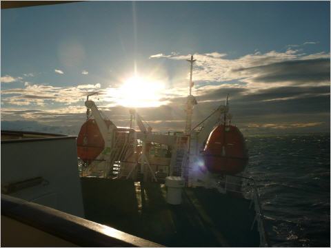 Dies war leider unser letzter Landgang und von nun an geht es wieder Richtung Ushuaia. Die Drake Passage liegt vor uns und viele der Passagier (auch Bigi) verlangen vom Arzt Pillen gegen die Seekrankheit. Das Meer scheint ruhig, aber es schaukelt bereits sehr heftig. Das Meer glitzert im abendlichen Sonnenschein.