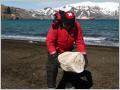 Vor der Ausschiffung mit den Zodiac muss jeder seine Stiefel in der speziellen Desinfektionslösung waschen. Es sollen ja keine Keime auf die Antarktis eingeschleppt werden. Das gleiche Prozedere gilt bei der Rückkehr, nur müssen dann die Stiefel noch abgebürstet werden. Hier bei der Base ‚Esperanza‘ betreten wir das erste Mal den siebten Kontinent, die Antarktis. Vorher waren es nur vorgelagerte Inseln. Zwei Arten von Pinguinen sind hier überall und haben immer Vortrittsrecht. Besuchen zusammen mit dem Stationsleiter das kleine Museum, Casino und die Schule (hier leben für ein Jahr 5 Elternpaare mit 18 Kindern und Teenies). Die Erstklässler arbeiten bereits mit Computer. Jedes Kind trägt einen roten Pullover mit Aufschrift ‚Esperanza‘ und gross seinen Vornamen. Natürlich werden wir im Casino (Mehrzweckhalle, Tanzsaal, Restaurant, Bar, Fernsehzimmer) wieder liebevoll bewirtet. Kaspar ersteht sich einen Antarktis Aufnähsticker für seine Mütze. Am späteren Nachmittag, es ist ja 21 Stunden Tag, fahren wir zu einem erloschenen Vulkan, wo wir auf eine riesige Pinguin-Kolonie (100‘000 Paare) stossen. Beobachten die putzigen Pinguine und stapfen eine Stunde in Einerkolonne über einen kleinen Hügel. Sehr anstrengend, kalt und Kaspars Stiefel drücken! Überall, soweit das Auge reicht Pinguine. Zwischen den Pinguinen liegen faul ein paar grosse Seelöwen. Diese können bis in 2‘000 m Tiefe nach Futter tauchen und sind daher danach entsprechend müde. An Land müssen sie sich für den nächsten Tauchgang erholen und genug Sauerstoff tanken. Räuberische Vögel überfliegen die Pinguinkolonie, in der Hoffnung, ein unbewachtes Ei oder ein Junges zu greifen. Lustig ist auch den im Meer schwimmenden, springenden und tauchenden Pinguinen zuzuschauen. Diese zu fotografieren ist jedoch eher schwierig. Wir dürfen nicht mehr weiter, denn es tummeln sich zu viele Pinguine und Seelöwen am Strand und die Zodiac müssen uns hier abholen. Es ist saukalt, alle frieren und warten, um in die Wärme zurückzukehren.