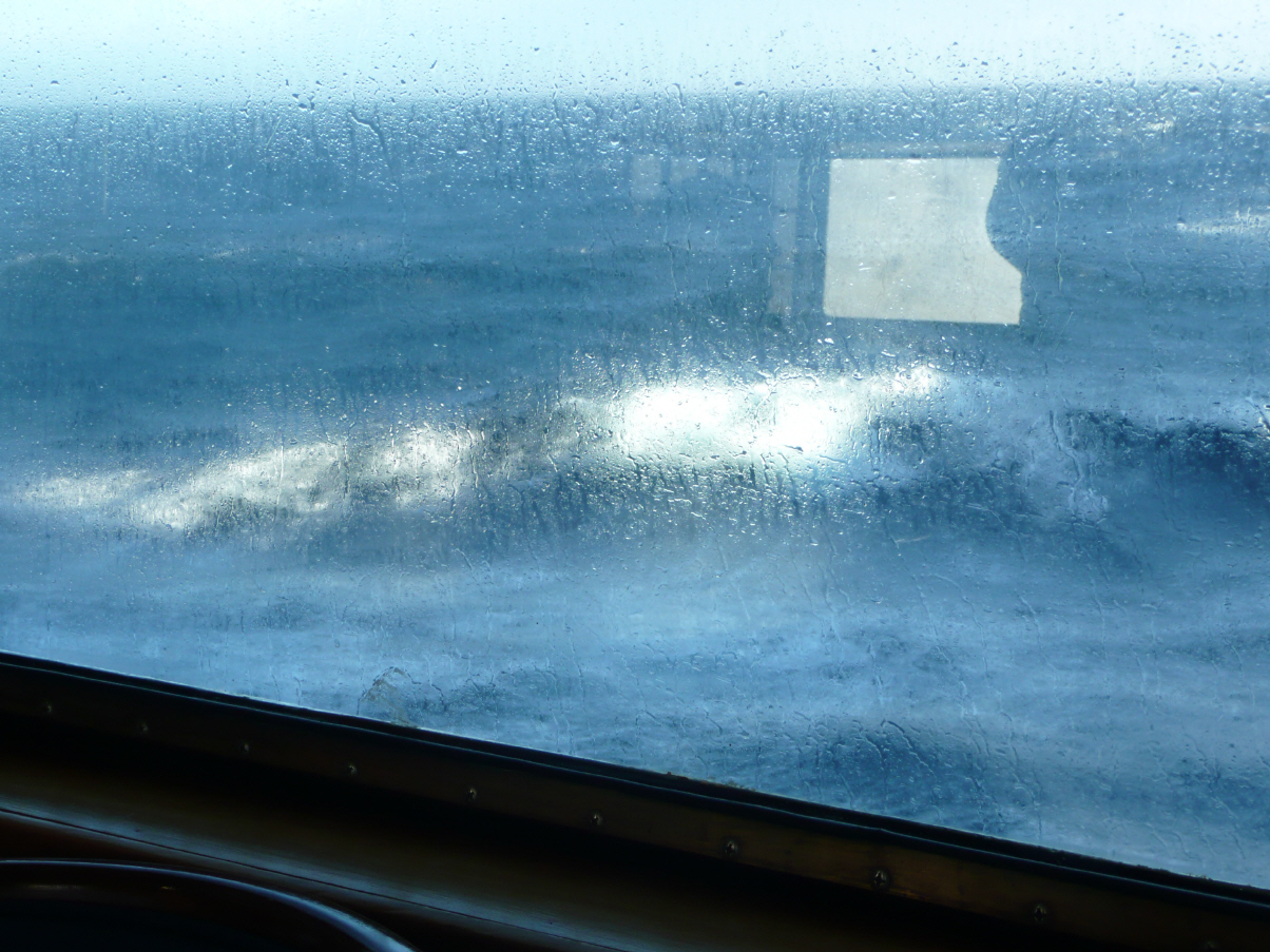 An den Fenstern des Speisesaals segeln zahlreiche Petrell-Seevögel vorbei. Kaspar wollte diese schon einige Male fotografieren, jedoch immer ohne Erfolg. Seegang bereits Stärke 7 - 8 = Achterbahn!