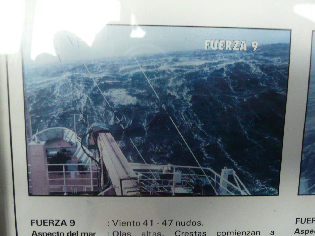 Welch ein Kindertraum: 24-Stunden Achterbahn, und dies erst noch ‚gratis‘! Alles fliegt auf den Boden und weiter unters Bett von Bigi. Schlecht geschlafen. Man wird von einer Seite auf die andere gewalzt. Auf die Toilette zu gehen ist ein Gleichgewichtskampf und muss vorher ‚gut geplant‘ werden. Kaspar kann ein Lied davon singen: eine Tischecke hat sich in seinen Oberschenkel gebohrt – blau, bläuer, am Blausten! Inzwischen ist Seegang Stärke 9 und die Wellen sind teilweise höher als das Schiff. Der Bug der ‚Antarctic Dream‘ taucht schlagend ins Wasser. Gischt spritzt über das Deck. Bigi hat sich beim Mittagessen schnell verabschiedet und ein Sandwich ans Bett geliefert bekommen. Am Nachmittag besucht Kaspar den Vortrag über Antarktik-Seevögel. Von 58 Passagieren sind nur 5 da! Später bringt Kaspar die roten Wind-/Wetterjacken zurück und wir hängen die Schwimmwesten wieder in den Zimmerschrank. Kaspar bezahlt noch die Rechnung für die diversen Schals und Mützen und steckt an der Rezeption ein Couvert mit dem Trinkgeld für die Crew in den Schlitz.