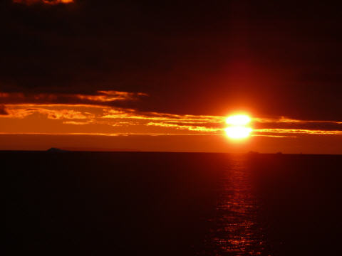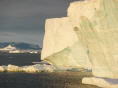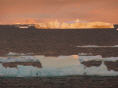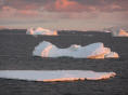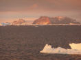 Um 23 Uhr bewundern wir den schönen Sonnenuntergang. Die Eisberge sind dadurch fantastisch beleuchtet und die Schattenspiele auf denselben sind schlicht grandios.