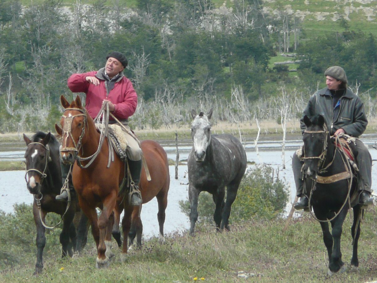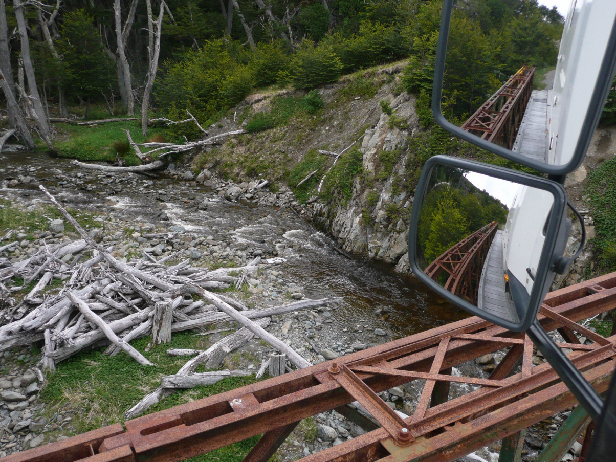 Bezahlen die Standplatzmiete und die Nacht auf dem Camping. Später bemerken wir, dass jemand versucht hat in den MAN einzubrechen. Aber nur mit einem Schraubenzieher geht das bei einem ‚Bocklet‘ wirklich nicht! Dann fahren wir über Schotterpisten gemütlich zu der ersten Estanzia ‚Harberton‘ auf Tierro del Fuego/Feuerland. Hier geniessen wir selbstgebackenen Rhabarberkuchen, studieren an den Wänden der Geschichte der Estanzia und schauen uns draussen um.
