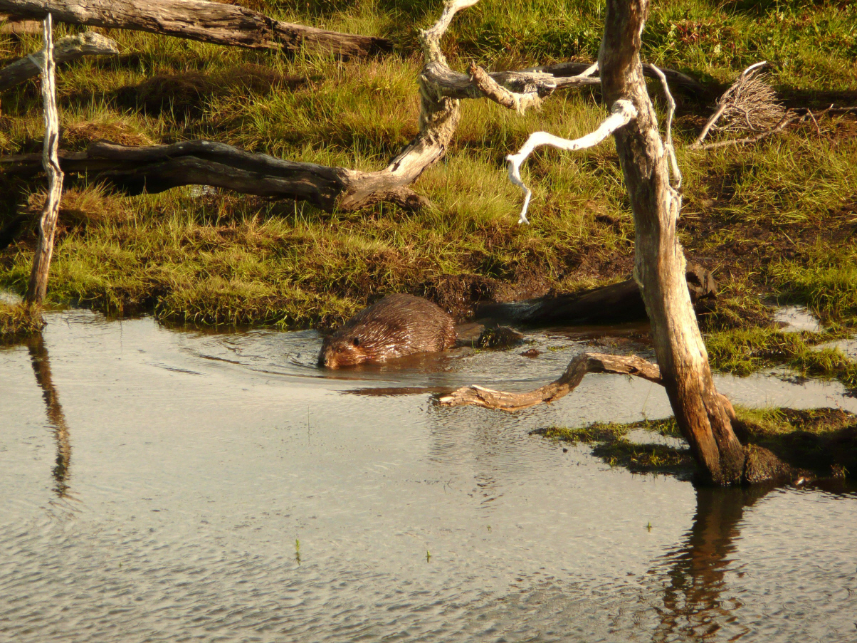 Unsere neuen Freunde, die Biber, kommen auf Besuch. Einer schwimmt und tauch 4 m vor dem Fenster. Hier geht er auch an Land um Gras zu fressen. Im Pyjama aus dem warmen Camper fotografiert Kaspar. An der Estanzia Harberton zurück bis zum Puerto Almanza. Vom Schiff aus haben wir hier vor gut einer Woche die schön beleuchtete Uferpromenade gesehen und wollen gemütlich irgendwo Kaffeee trinken und Einkaufen.
