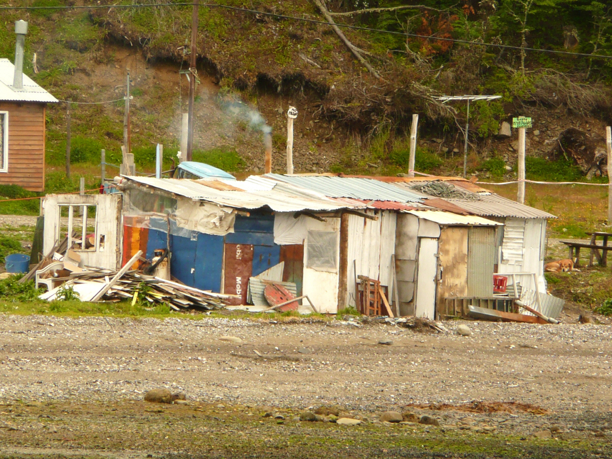 Das verlassene Fischerdorf, mit der Tag und Nacht beleuchteten Schotterstrasse, liegt ganz genau vis-à-vis Port Williams/Chile. Hier stehen ca. 50 unisolierte Häuser, eher Schuppen und 8 Fischerboote schaukeln auf dem Meer. Leute sieht man keine, nur Hunde rennen bellend und fletschend neben dem MAN her. Hier ist auch eine verlassene Navi-Station mit 4 verrosteten Kanonen, die jedoch mit Blachen abgedeckt sind, also funktionsfähig. Eine Kanone wird gerade mit roter Farbe angestrichen. Ein kleines Fort, aber gegen wen und was? Bigi bäckt nach Mutters Rezept ‚Schoggi Chips‘. Mmmh, fein! Weiter unseren Antarktis-Bericht mit den Fotos für die Homepage schreiben und zusammenstellen.