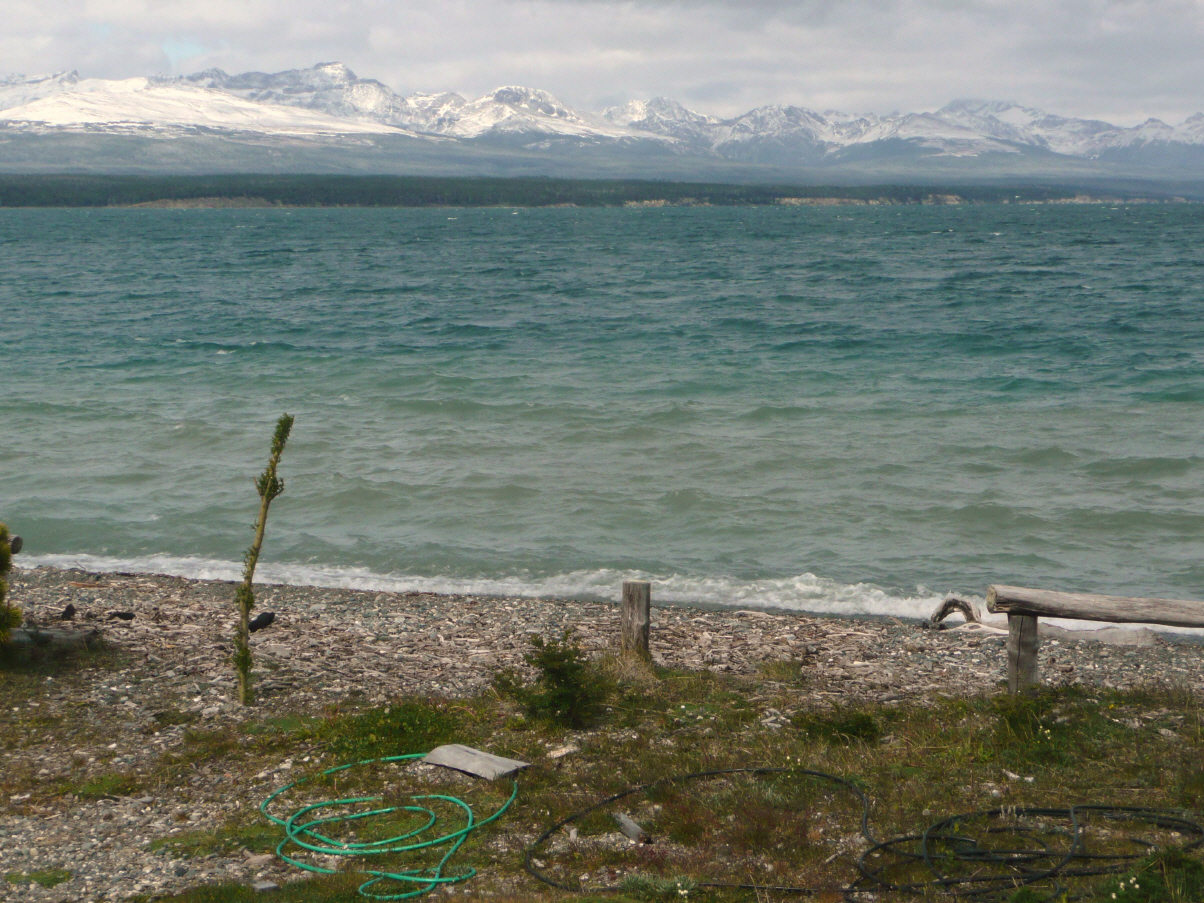 Fahren noch 100 km weiter nach Süden auf der Route Nr.3. In der kleinen Stadt Tollhuin am Lago Fagnano (100 km lang, 10 km breit) finden wir einen schönen Camping direkt am Wasser. Der See ist vom Wind stark aufgewühlt und die grossen Wellen schlagen ans Ufer. Wieder einmal rüttelt und schüttelt unser Zuhause.