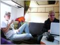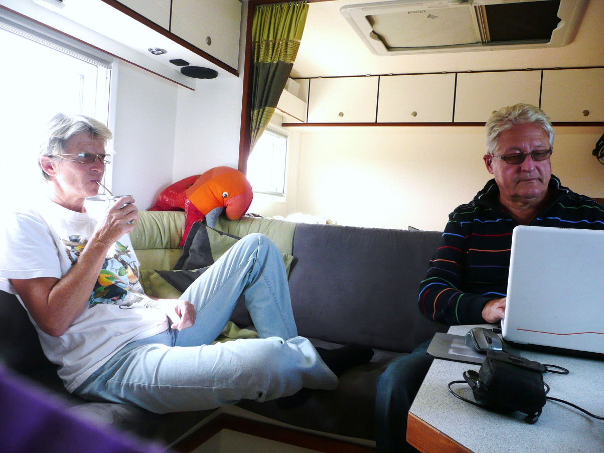 Schlafen heute etwas länger. Besichtigen die Modelleisenbahn des Campingplatzbesitzers. Mit einfachsten Mittel, aber ganz gut gebaut. Wir laden ihn zum Kaffee ein und Kaspar schenkt ihm einen kleinen Modellcamper, Bigi eine Miniatur-Schweizerflagge. Er hat riesig Freude – dies ist Weihnachten! Sofort integriert er Beides in die Anlage und kommt mit einem Foto zurück. Bigi möchte wieder einmal draussen sitzen und Kaspar holt einen Campingstuhl heraus, stellt diesen in den Windschatten. Kaspar verzichtet grosszügig. Verschiedene Mal geht Bigi mit einem Buch und gut eingemummelt nach draussen, bleibt jedoch nie sehr lange, denn es ist einfach zu kalt mit dem starken Wind. Hören Weihnachts-CD und sypen eine Stunde mit Bigis Familie. Das Neuste aus Familie und Politik wird durchgenommen. Zu Abend essen wir das gute MAN-Camper-Fondue. Heisses Fondue mit geschwellten Kartoffeln, Ananas und Äpfel und dazu einen guten Dole Blanche. Auch spielen wir heute wieder Triomino. Hier hat Kaspar eine kleine Chance gegen Bigi zu gewinnen