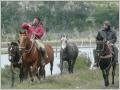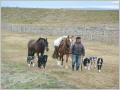 Voraus, in der Mitte und am Schluss ‚Gauchos‘ mit ihren Pferden und Hunden. Kaspar kann die Szene gut filmen. Hier im Süden haben Gauchos meist ein Perret auf dem Kopf und sind mit zwei oder drei Pferden sowie drei bis sechs Hunden unterwegs. Hinten am Sattel ist alles festgeschnallt, was fürs Übernachten gebraucht wird.