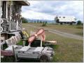 Hier scheint ein mildes Klima zu herrschen, es gedeihen: Erdbeeren, Johannisbeeren, Rhabarber und viele Arten von Blumen. Dann weiter die Route ‚J‘ folgen bis zum wirklichen Ende der Welt, der Estanzia Moat. Zwei Kilometer vor der Estanzia ist Schluss, ein Zaun versperrt den Weg.