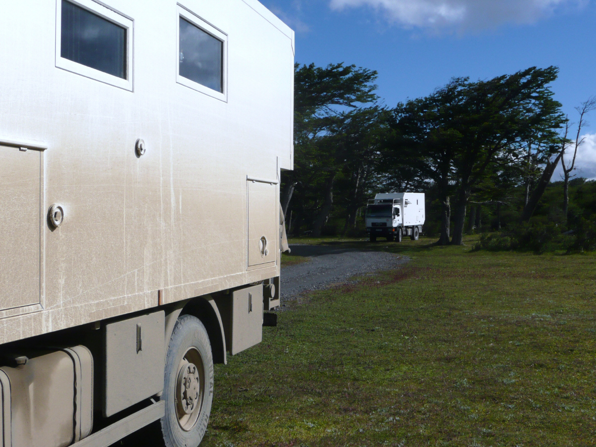 Wir fahren nach Tolhuin, wo wir 80 Liter ‚schlechten Diesel‘ (mit hohem Schwefelgehalt) tanken. Treffen nochmals Regina und Thomas mit Hündin Nora. Wir plaudern und sie fahren die ähnliche Route wie wir, und wir werden uns bestimmt nochmals begegnen. Frisches Brot und diverses sonstiges Essen einkaufen und auf den Camping Hain am Lago Fagnano. Bigi lädt die Emails herunter, schreibt Weihnachtsmail und arbeitet an unserer Homepage. Kaspar kontrolliert den MAN: Luftdruck, Ölstand, Kühlwasser (es fehlt ein halber Liter), reinigt die Toilette, alle Fenster und den Luftfilter. Ein Aussenstaukasten war nicht richtig verschlossen, sodass alles sehr sandig und staubig ist. Auch dieser Kasten samt Inhalt wird komplett gereinigt. Whisky trinken, skypen und Triomino spielen.