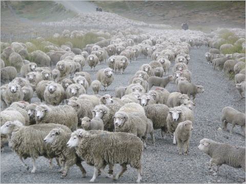 Wir fragen uns, wie die Leute hier autofahren lernen? Alle Stunde ein Fahrzeug, keine Stoppstrasse, keine Ampeln, Vortrittsrecht und vieles mehr. Möchten einem solchen Autofahrer nicht in Buenos Aires begegnen. Fahren rund um die ‚Bahia Inutil‘ Richtung Porvenir. Unterwegs kommt uns eine grosse Herde Schafe entgegen.