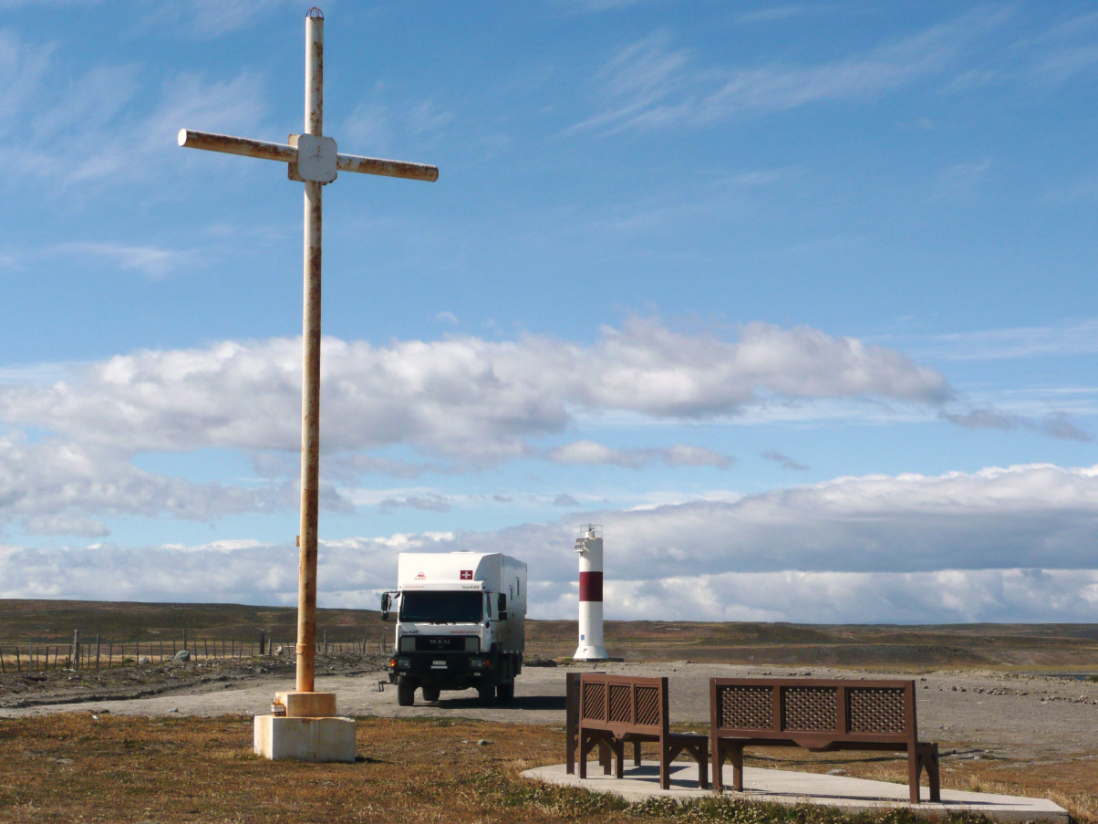 Heute wollen wir weiter in den chilenischen Teil Feuerlands. In Rio Grande kurzer Tank- und Einkaufsstopp. Wollen noch ein Missionsmuseum (1878), das auf der Landkarte eingetragen ist besichtigen. Aber wie des Öfteren, geschlossen und nicht viel zu besichtigen. In San Sebastian passieren wir den Zoll. Erstaunlich viele Leute warten auf die Zollabfertigung. Diese ist sowohl auf argentinischer wie auch auf chilenischer Seite schnell und sehr freundlich. Der chilenische Zöllner inspiziert Kühlschrank und ein paar kleine Schränke. Er will die deklarierten ‚manzanos‘ sehen – oh, wir wussten doch, dass Früchte nicht erlaubt sind und haben keine Äpfel – wir haben Butter im Kühlfach, ‚mantequilla‘! Auch haben wir noch wenig Rauchschinken in der Originalverpackung, da wir gelesen haben, dass dies erlaubt ist. Der Zöllner schliesst beide Augen und erklärt uns, dass wir das nächste Mal keine Frühstückskörner und Rauchschinken mitführen dürfen. Kurz nach der Grenze holt dann Bigi den Käse wieder aus dem Gefrierfach.