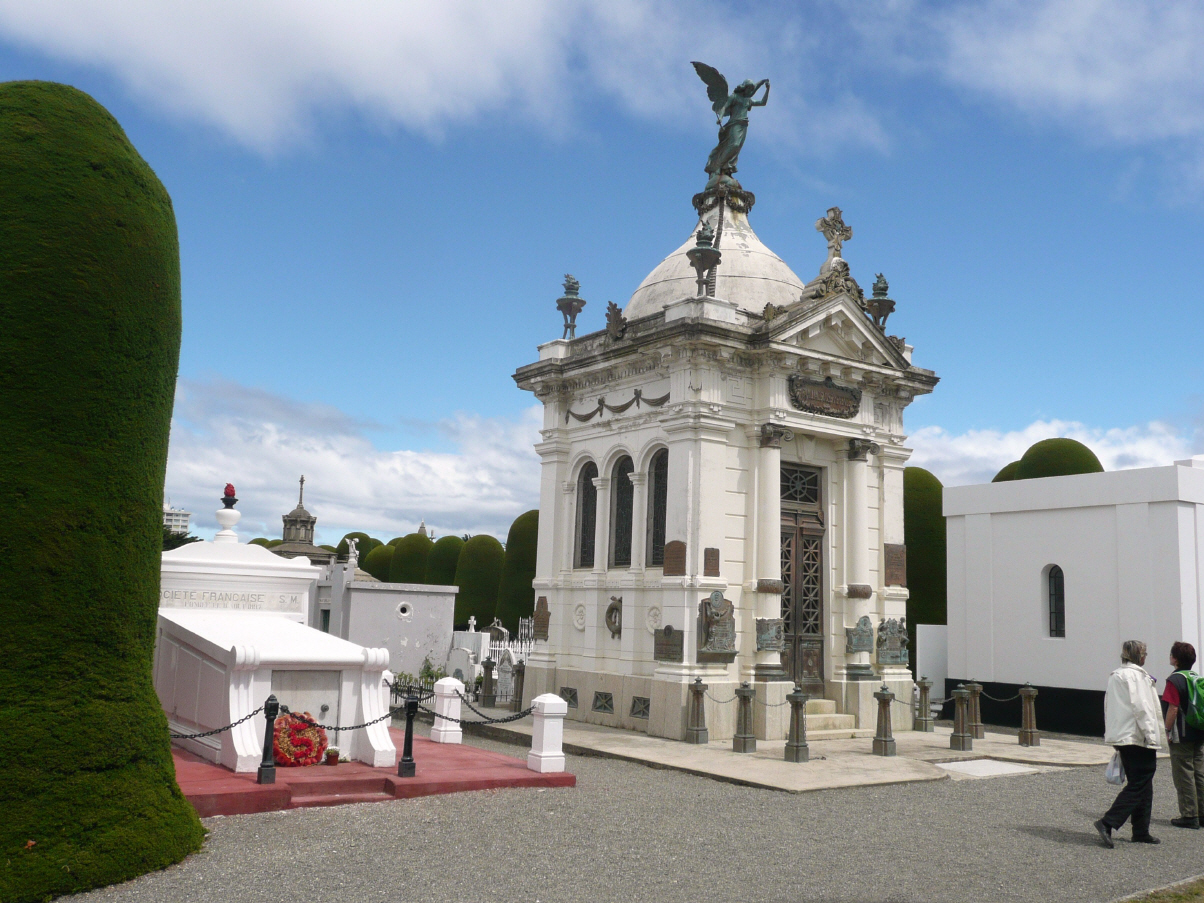 Danach marschieren wir zum Nationaldenkmal, dem alten städtischen Friedhof. Hier befinden sich prunkvolle vor Geld strotzende Familiengräber. Heute wird man nur noch in Nischen beerdigt. Viele Plastikblumen und kleine Geschenke in und auf den Gräbern. Thomas und Regina verlassen uns, denn sie haben noch ein gedrängtes Programm (Frontscheibenreparatur und Seitenkasten öffnen lassen, der durchs Holpern verklemmt ist und wo sich die wichtigen Dinge wie Grill und Angel befinden). Kaufen im Park auf dem Handwerkermarkt noch Pinguin und Alpacca-Schal. Nun sind wir wieder zu Hause mit schönem Blick über die Stadt.