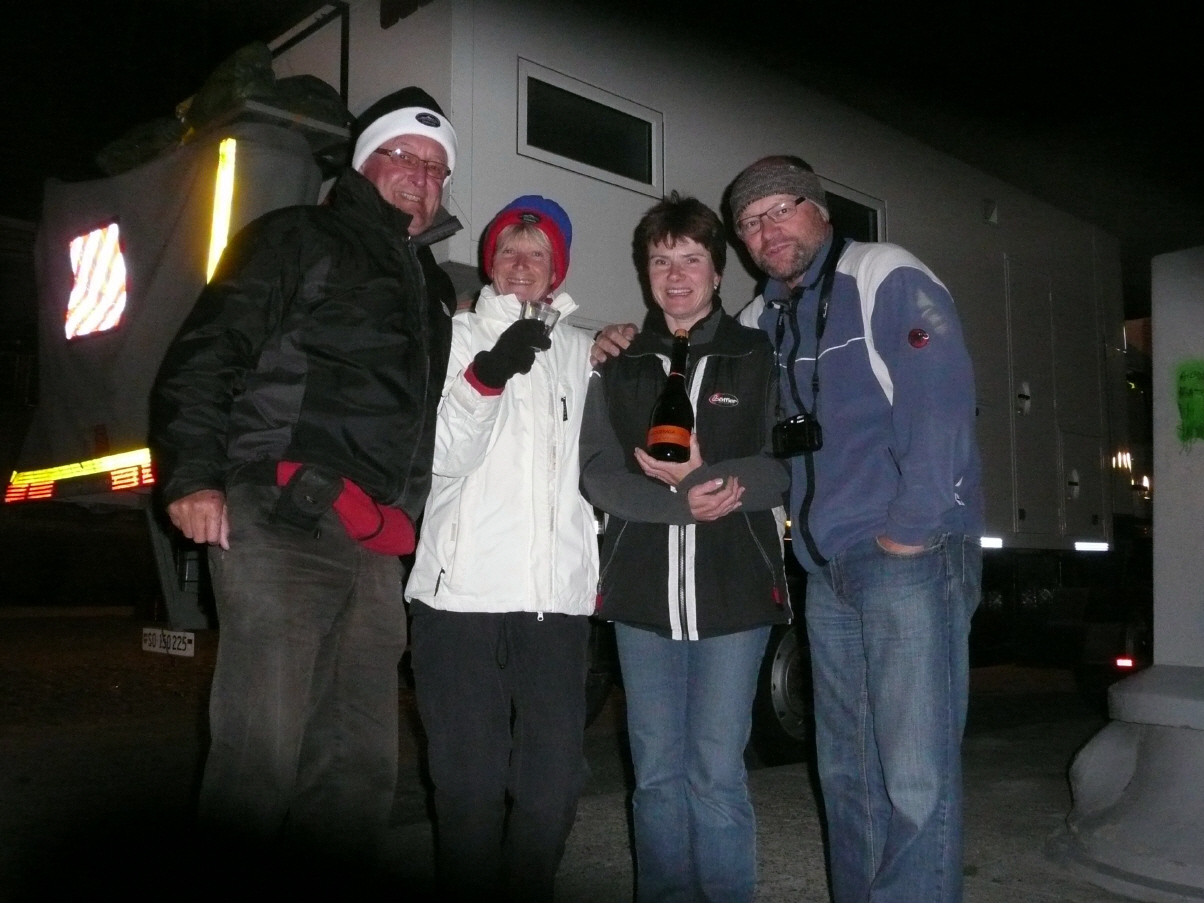 Sind keine 10 Minuten hier, da kommt doch der Schweizer MAN mit Regina, Thomas und der Hündin aus dem Wald angefahren. Würde man dies planen, unmöglich. Sie sind unseren Spuren gefolgt und auch ein wenig gerutscht. Diese Strasse ist auch wieder einmal das Ende der Welt. Später gehen wir noch rüber zum plaudern.