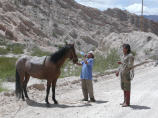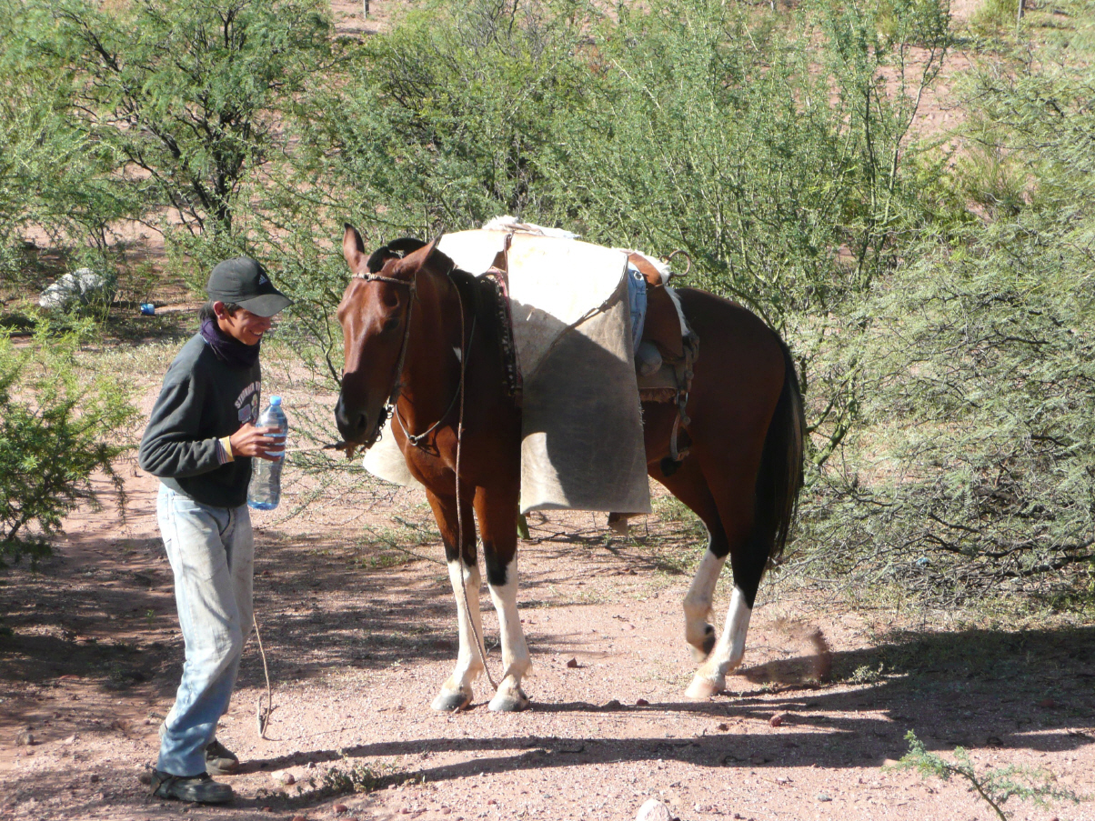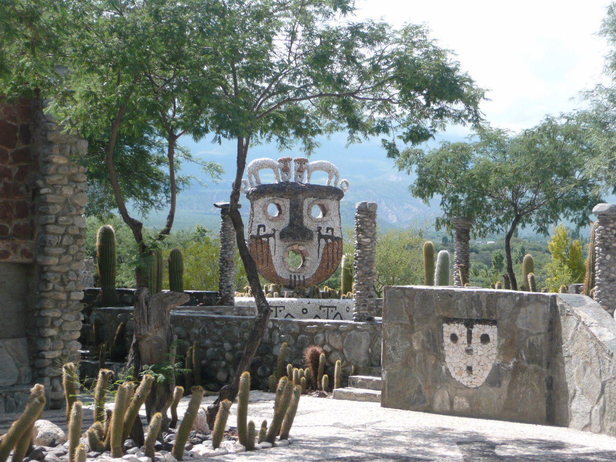 Heute ist Eröffnung des ‚Museo de la vid y el vino‘ in Cafayate. Wir haben uns die Billettnummern 3+4 ergattert. Hiesige Einwohner können die ersten zwei Wochen gratis ins Museum. Bis jetzt sind die Besucher spärlich. Das Weinmuseum ist hervorragend gestaltet. Der Wein hier ist eine Klasse für sich und günstig! Kaufen am Hauptplatz noch spezielles Gebäck ‚Calchaquitos‘, so ähnlich wie Mandeltörtchen mit diversen Fruchtaromen in den jeweiligen Farben. Weiter Richtung Molinos. Die Schotterpiste ist schlecht und so lässt Kaspar das erste Mal Luft aus den Reifen. Und siehe da, wir können die Piste recht gut befahren und es ist wirklich angenehmer. Kaspar schimpft sich ein ‚Löli‘, dass er dies trotz Wissen bisher nie gemacht hat. Aus Schaden wird man Klug (dreimal gerissene Querstrebe), bisherige Kosten CHF 250. Durch ein bizarres Tal mit verrückten Felsformationen geht es über schmalste Strassen nach Molinos. Unterwegs werden wir von zwei Gauchos um Wasser gebeten und wir geben gerne zwei Flaschen aus unserem Vorrat.