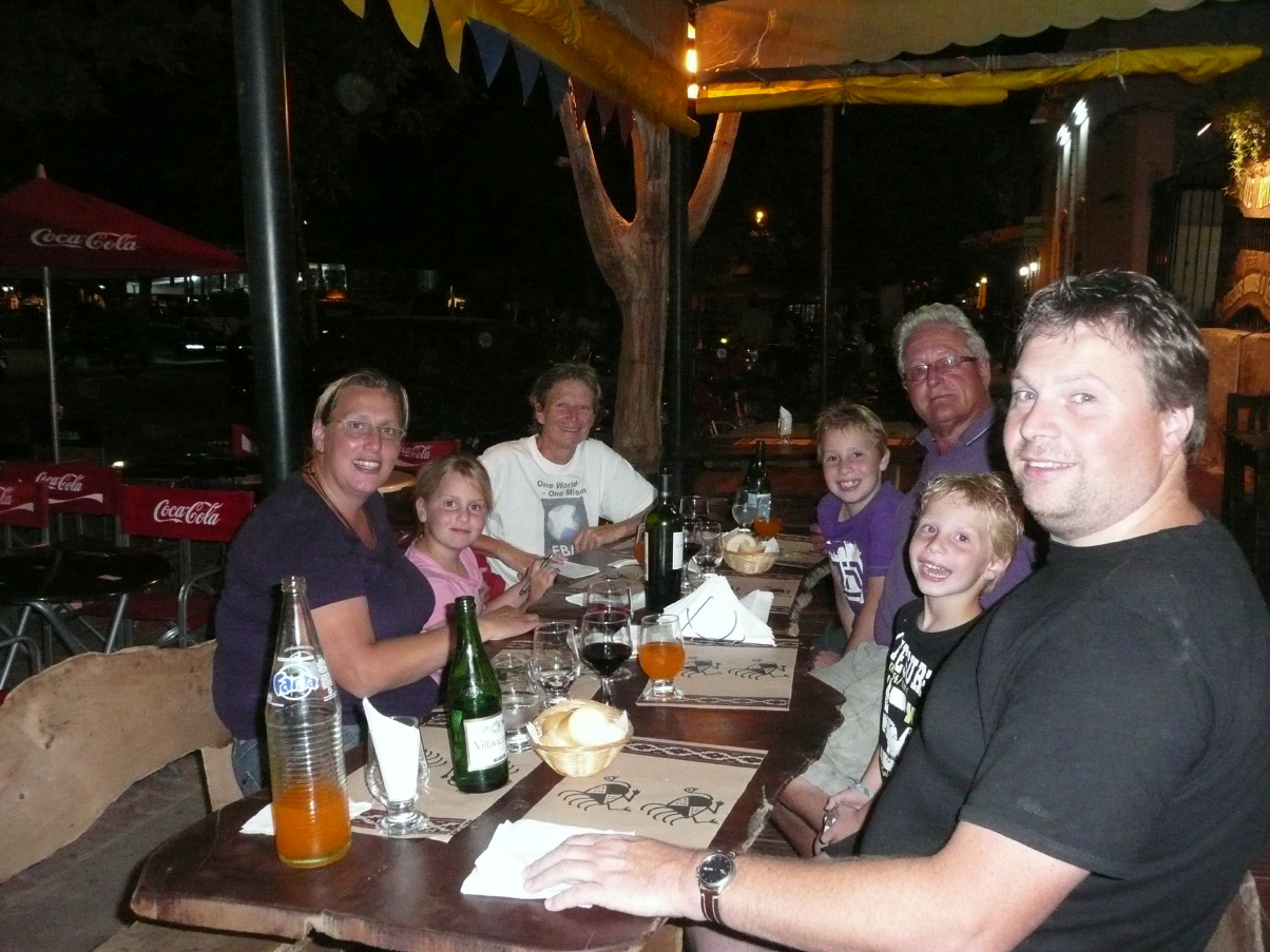 Wir sitzen mit Laura, Edwin, Toon, Bente und Huub auf dem Hauptplatz in einem Restaurant mit Gitarren live Musik. Gemütlicher und fröhlicher Abend. Kaspar bastelt für die Kinder Papierflugzeuge. Probeflug macht er selber und das Flugzeug landet prompt auf Nachbars Glatze. Der Kandidat hat hundert Punkte!