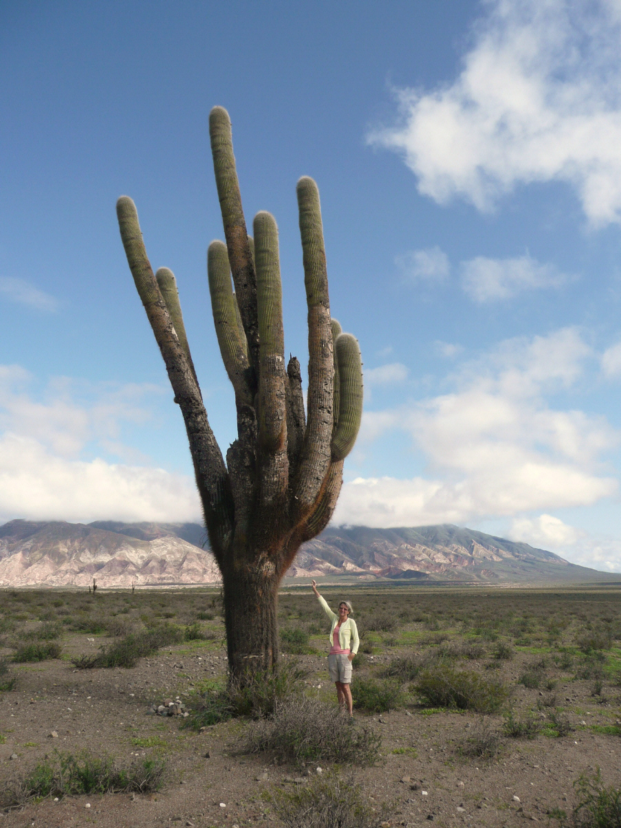 Alle Sitz- und Stehplätze sind belegt und es kommen immer noch Leute hinzu. Auf geteerter Strasse durch den Nationalpark ‚Los Cardones‘. Auf dieser Hochebene stehen tausende von Kandelaber-Kakteen, welche bis zu 12 m hoch werden. Ein Nationalpark nur für diese Kakteenart ist schon verrückt, daran sieht man, dass Argentinien grosse leere Flächen hat. Über einen Pass 3450 m ins Tal ‚Cuesta del Obispo‘. Auf schmalster Strasse mit vielen Serpentinen und grossem Gefälle geht es durch dicken Nebel – 5 bis 10 m Sichtweite – auf dreckiger Strasse hinunter ins Tal. Immer wieder überqueren Sturzbäche die Strasse und reissen dieselbe weg. Danach ist nur noch die halbe schmale Strasse vorhanden. Eine Baumaschine schaufelt die Strasse frei. Grosser Stau von Bussen, LKW, PW mit und ohne 4x4. Wir brauchen Geduld. Die Fahrt ist ziemlich gefährlich, denn das Gelände fällt steil ins Tal ab und die Strasse schlängelt sich dem Berg und Abgrund entlang. Einmal in einem Einschnitt warten viele PW und Motorräder, weil ein grosser und tiefer Sturzbach über die Strasse fliesst. Wir mit unserem Allrad holpern durch das Bachbett. Plötzlich öffnet sich das schmale Tal und wir befinden uns wenige Kilometer vor Salta. Finden den grossen Campingplatz auf Anhieb. Das Wetter ist trüb. Für Morgen wird uns eine Werkstatt empfohlen, welche sich trotz Feiertag (Karneval) unserem MAN annimmt. Wir sind gespannt. Nach mehrmaligem Ausrichten der Antenne empfangen wir ein Internetsignal. Nun hat Bigi viel zu tun mit Skypen, Email und Homepage. Bigi sagt auf einmal: 'oh, andersch wär eifacher gsi, wänn ich Tag um Tag übertreit het.' Kaspar sagt trocken: 'au Du bisch no lernfähig.'