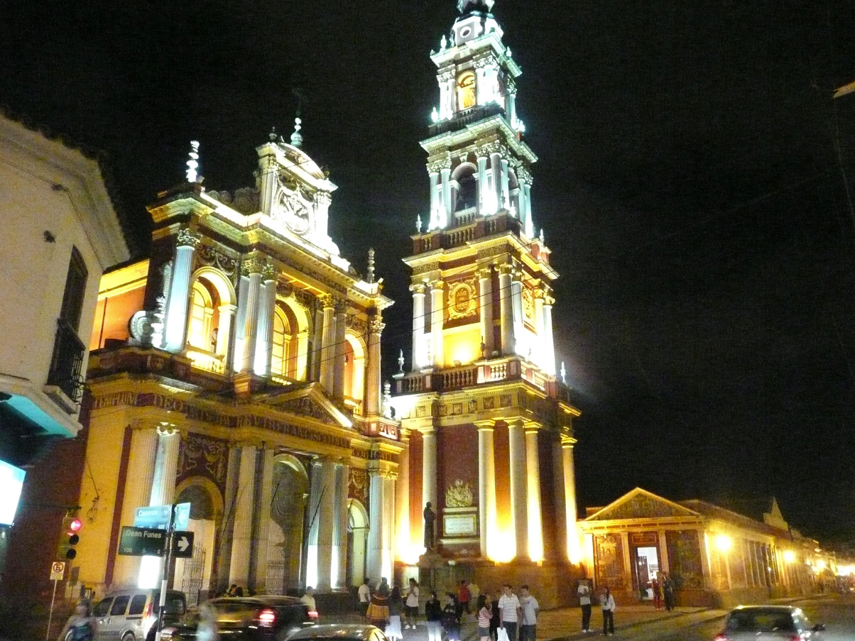 Pünktlich um 15 Uhr sind wir wieder beim Metallurgica, welcher, man staune, eine Viertelstunde später eintrifft. Um Schweissen zu können muss das Fahrerhaus gekippt werden. Dies gelingt uns dank Unterstützung einiger starker Männerhände. Kaspar hat wohlweisslich die Badehose, schmutziges T-Shirt und Arbeitshandschuhe angezogen. Damit lässt sich nachher der Dreck besser abwaschen. Kaspar demontiert den Kotschutzlappen und den Luftfilter, um möglichst gut an den gebrochenen Träger heranzukommen. Der Metallurgica schweisst alles und verstärkt den Träger mit einem sehr starken Winkeleisen von unten. Nun hoffen wir, dass diesmal alles hält. Den Reifendruck wird Kaspar auf jeden Fall nicht mehr so schnell erhöhen. Am Abend fahren wir mit dem Taxi ins Zentrum von Salta um Walti, Madelaine und Fridolin zum Nachtessen zu treffen. Wir werden ein paar Tage zusammen reisen. Herzlicher Empfang. Spazieren zum Hauptplatz mit der schön beleuchteten Kathedrale. In einem netten Restaurant essen wir ausgezeichnet Lomo. Der Rest als Roastbeef geschnitten reicht locker für das morgige Mittagessen.