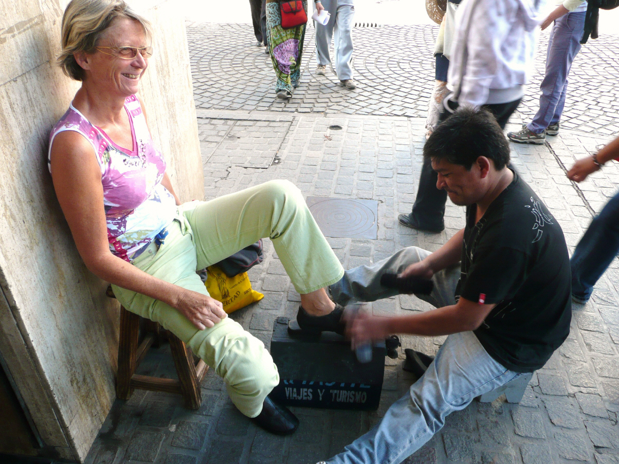 Anschliessend lassen wir uns unsere Schuhe am Strassenrand putzen und auf Hochglanz polieren. Kurzes Mittagessen im MAN und dann Abfahrt Richtung Purmamarca.