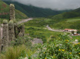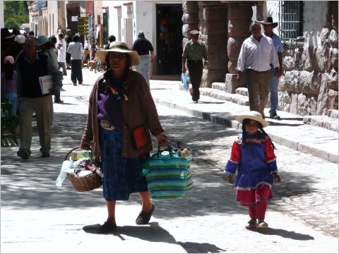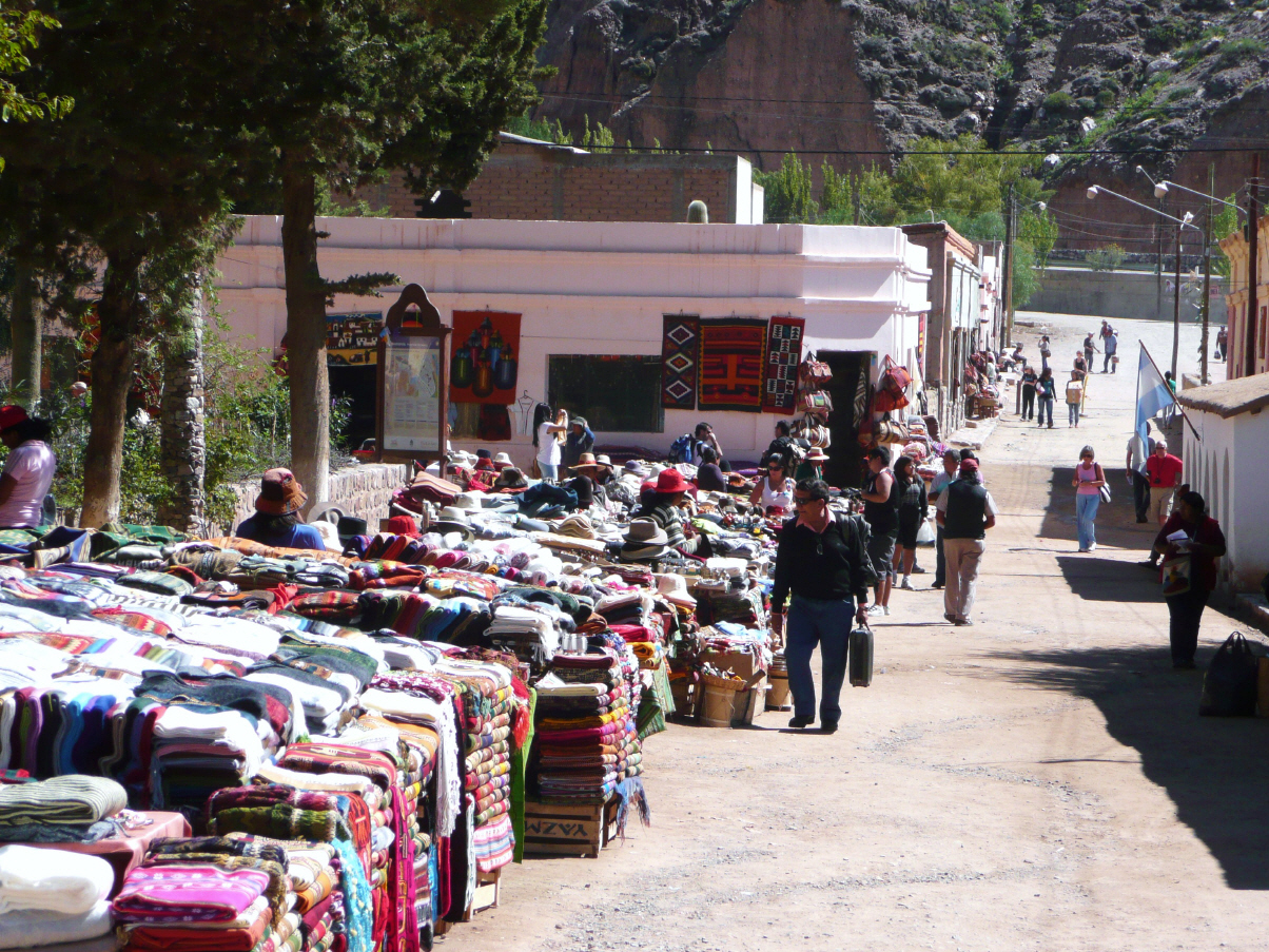 Spazieren ins kleine Dorf und schlendern am Dorfplatz von Stand zu Stand. Der bolivianische Einfluss ist hier bereits sehr stark zu spüren. Bigi kauft kleine lustige Fingerpuppen. Dann eine zweistündige Wanderung um das grossartige Felsenband herum. Zurück auf dem Markt sind alle Stände wegen Siesta zugedeckt. Es fängt ganz leicht an zu regnen, so dass wir zum MAN zurück spazieren. Treffen zwei Motorradfahrer, ein Berner und ein Brasilianer, die eine Tankstelle suchen. Dies gibt es in diesem Ort nicht, sondern erst etwa 40 km weiter. Sie sind sehr knapp an Benzin und wir helfen mit einem 20-Liter Kanister aus. Abends geraten wir am Dorfplatz in eine ‚Touristenfalle‘ und das Nachtessen schmeckt nicht allen.