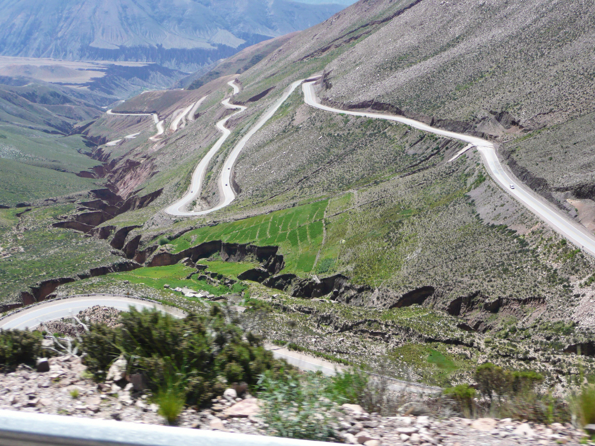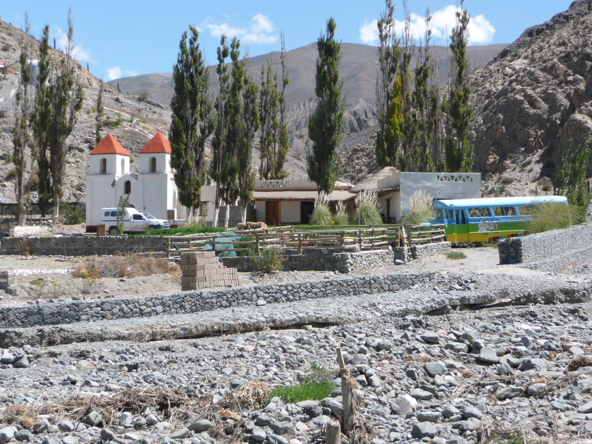 Ein Teilstück der Strasse nach Salta ist schön asphaltiert, aber 50 km vor Salta wird die Strasse sehr schmal und ist zum Teil verschüttet. Kreuzen mit andern Lastwagen nicht möglich. Kaspar setzt einmal den MAN über eine längere Strecke dem Abgrund entlang rückwärts. Unterwegs besuchen wir noch ein katholisches Missionarszentrum mit alter Kirche und bolivianischem Bus. In Salta angekommen, viele Geschäfte geschlossen – schon wieder Feiertag.