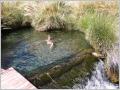 Roller aufladen und ein Schwumm im frisch eingefüllten Swimmingpool. Der grosse Campingplatz ist nun leer. In San Pedro treffen wir bei der Durchfahrt Max und Heidi mit dem MAN. Die Beiden haben wir in Lobos auf dem Camping anfangs November kennengelernt. Nach Kaffee und Kuchen verabschieden wir uns. Die Fahrt geht nun Richtung Geysers El Tatio. In Puritama sind schöne Natur-Thermen. Es lockt ein Bad im warmen Wasser. Die Therme mit 8 Naturbecken ist sehr schön in einer Schlucht eingebettet. Herrlich klares Wasser!