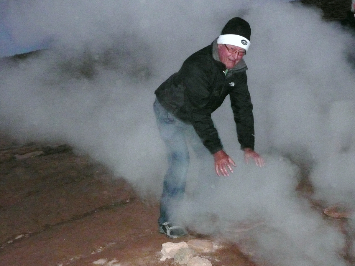 Hunderte Touristen wie wir bewundern die vielen dampfenden Geysirs schlotternd bei minus 3 Grad. Auch hier gibt es ein Schwimmbecken in welchem wir bei 5 Grad Aussentemperatur das warme Wasser geniessen. Um 10 Uhr ist der ganze Spuck zu Ende und die Touristen kehren heim. Über recht gute Piste fahren wir zügig nach Calama.